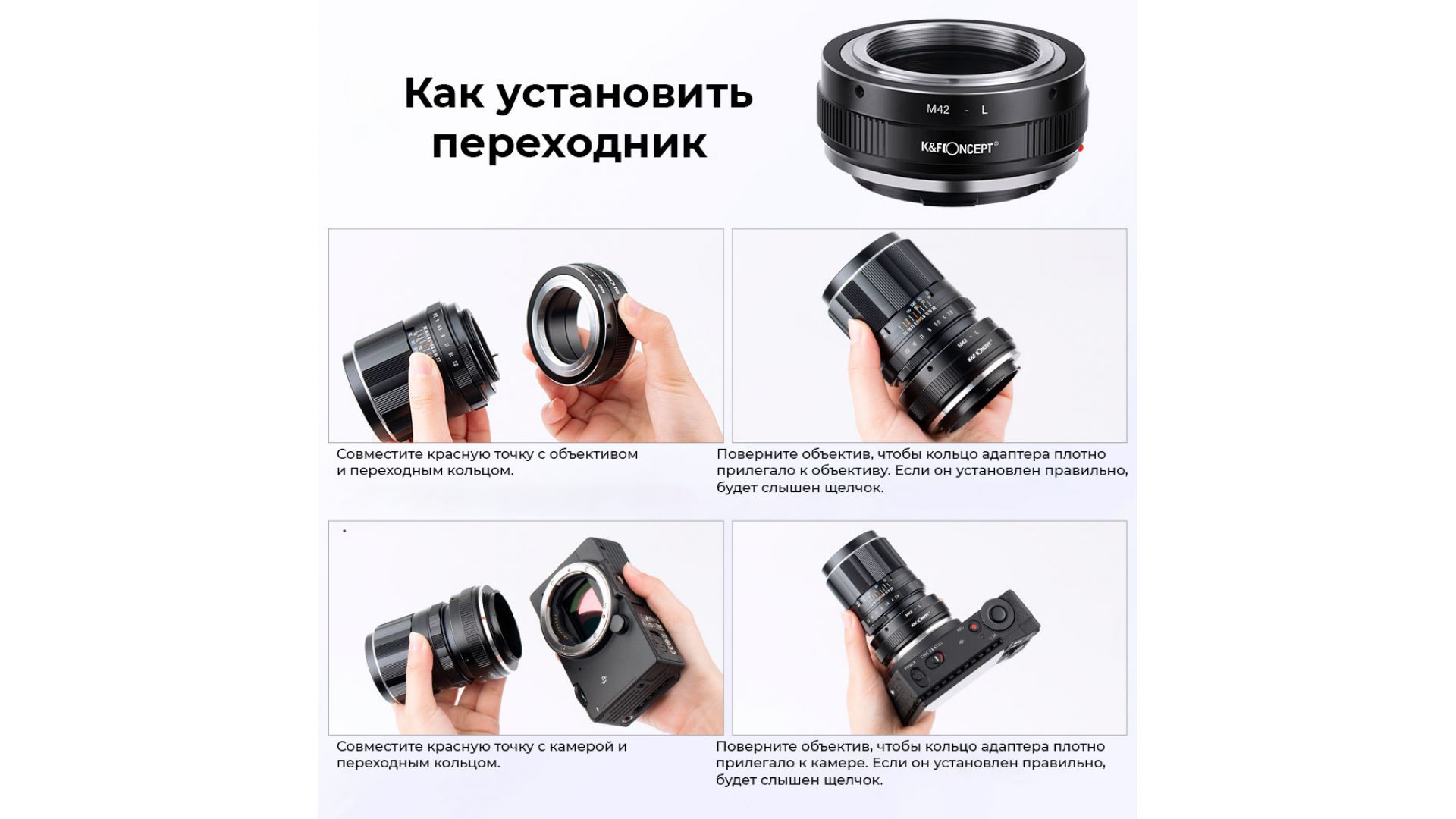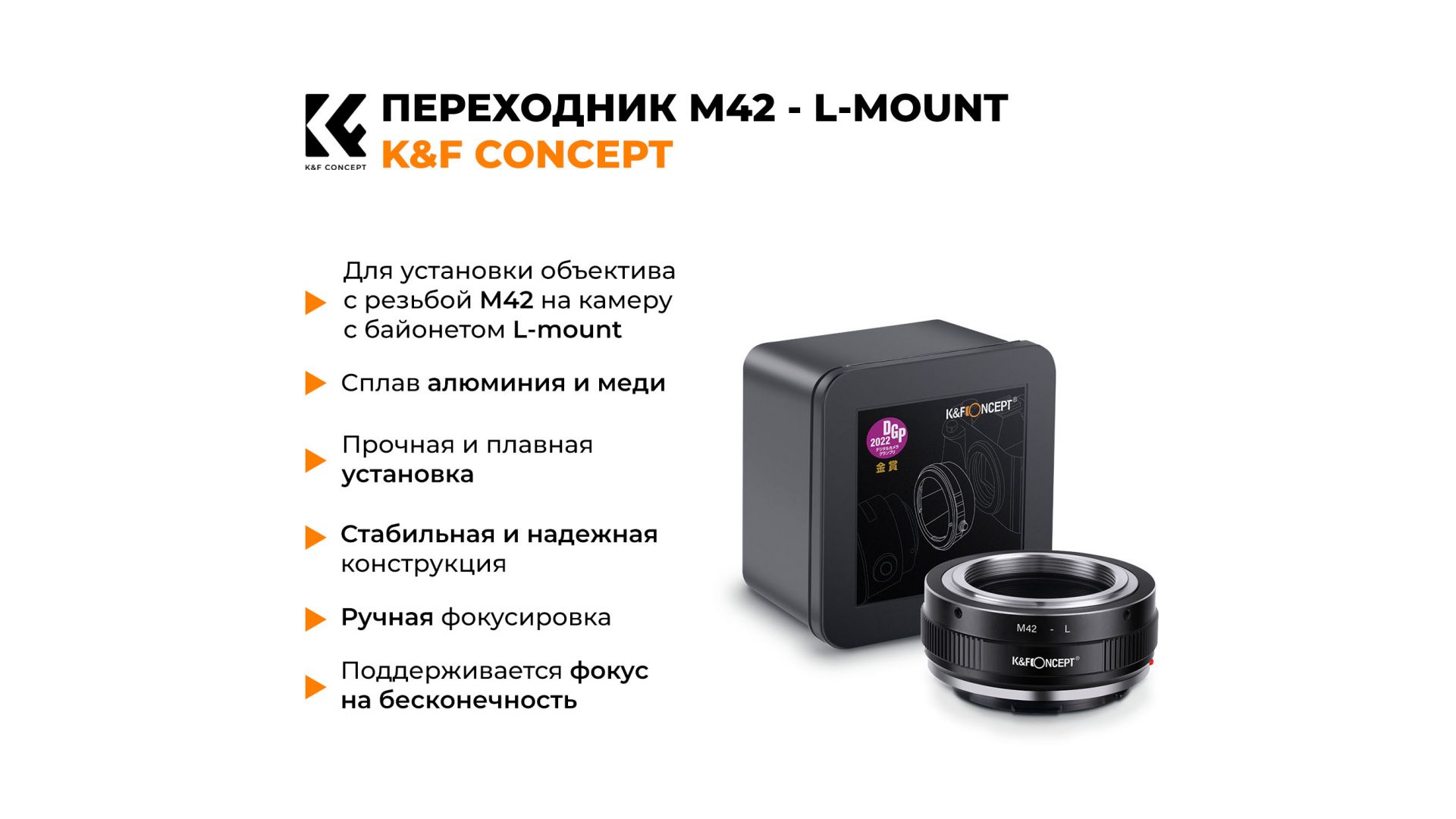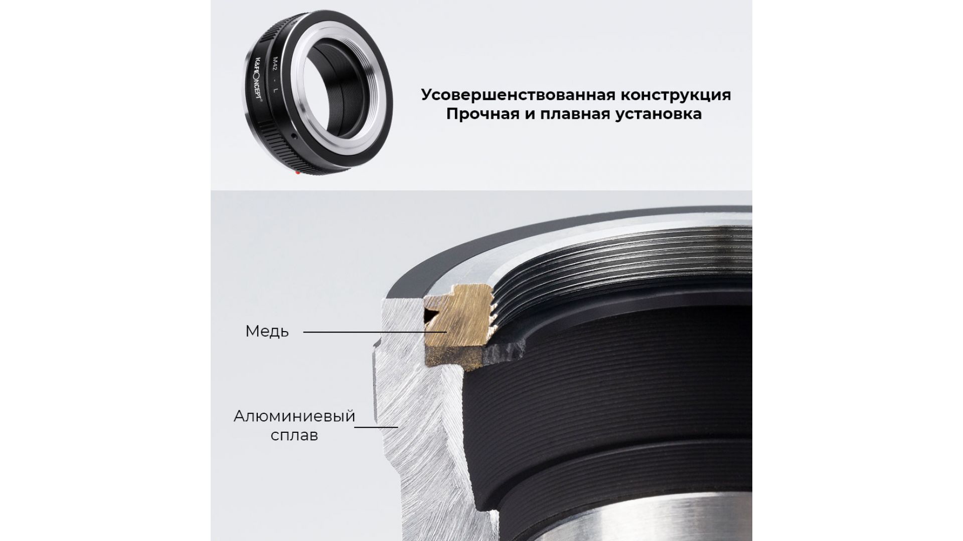Механический адаптер K&F Concept M42 - L-mount — надёжный переходник для использования винтажных объективов M42 на современных камерах с байонетом L (Leica, Panasonic, Sigma).