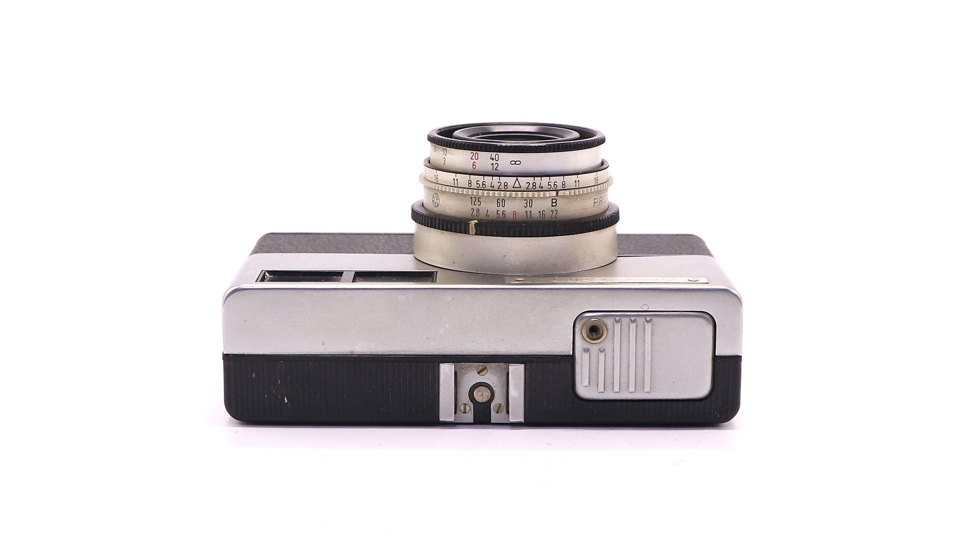 Он имеет пластиковый корпус и использует объектив Adoxon 45 мм f/2,8. Выдержки составляют 1/30, 1/60 и 1/125 плюс выдержка. В основании камеры расположены счетчик пленки, рычаги подачи и перемотки пленки. Искатель обратного типа Галилея со метками коррекции параллакса. Задняя часть камеры может отделяться от корпуса и не крепится шарниром.