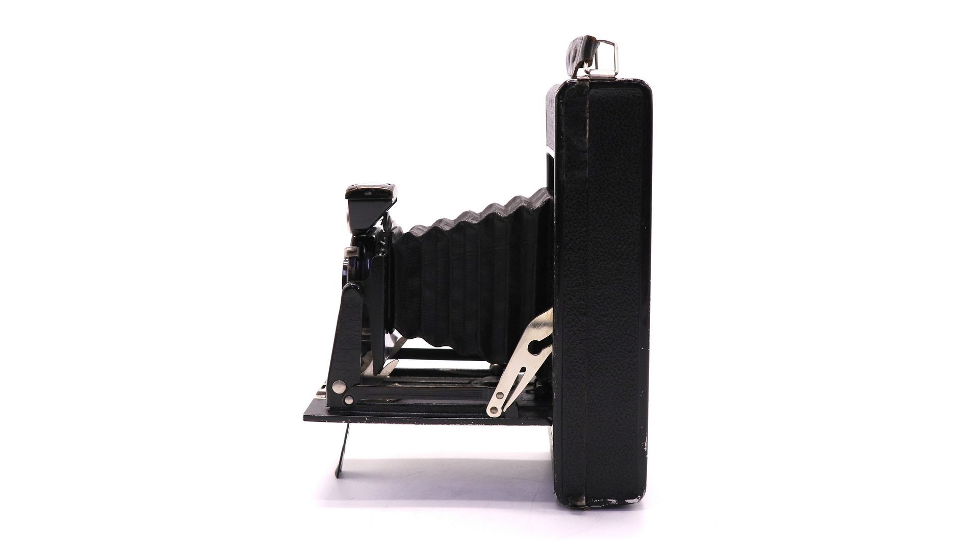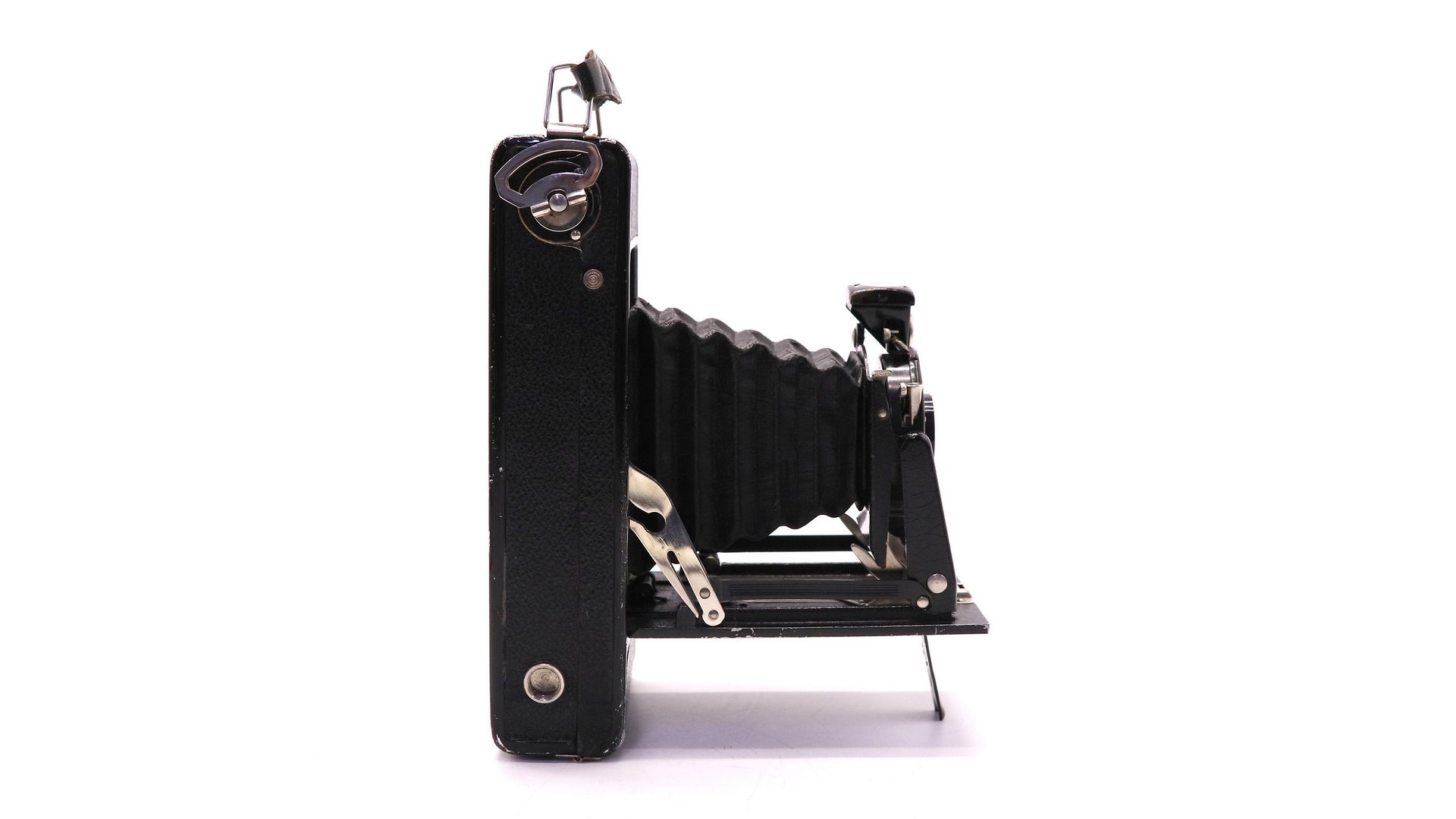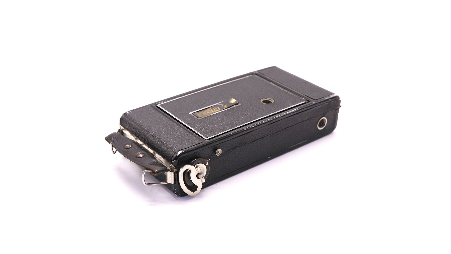 Простой пружинный поворотный затвор с металлическим скользящим диафрагменным диском. Фотоматериал - пленка типа 120. На пленке 8 кадров. Формат кадра: 6х9 см. Примечательной особенностью этой камеры является красивая передняя панель в стиле ар-деко. Отличный экземпляр для любой коллекции.