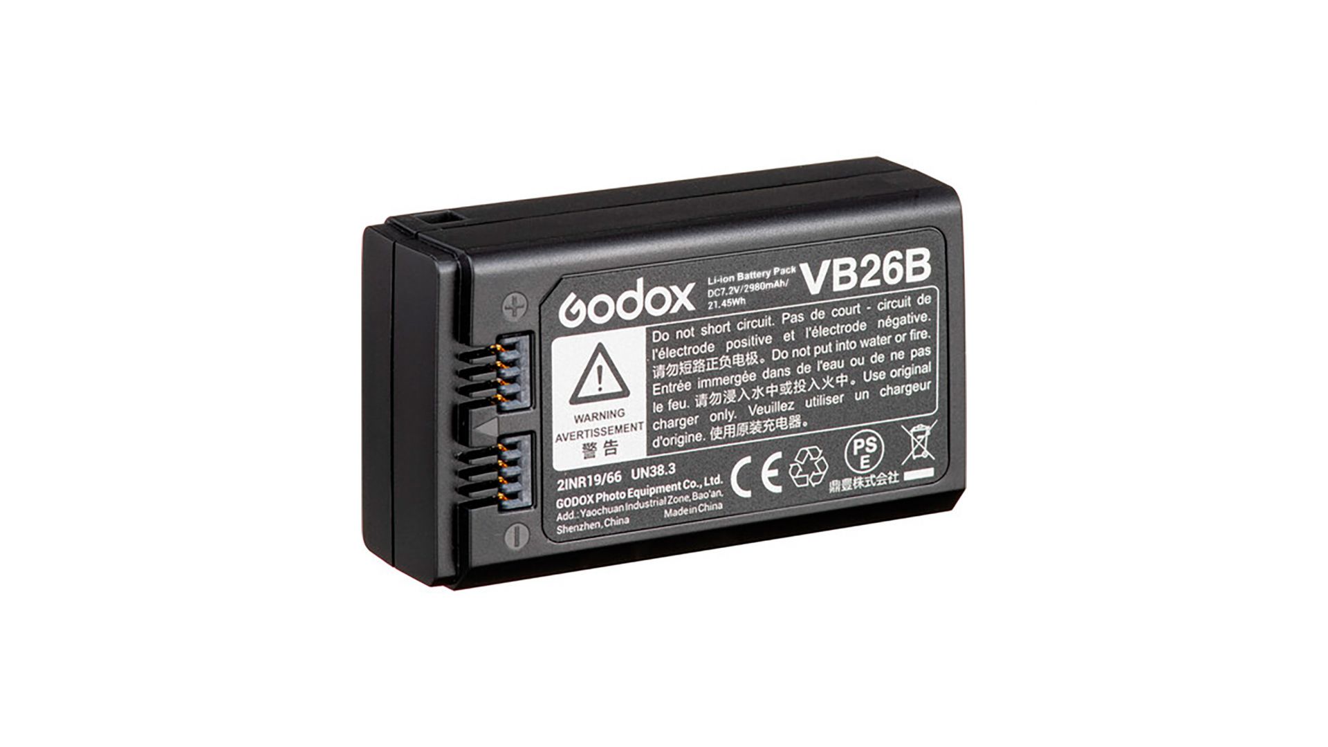Godox VB26B – это мощный литий-ионный аккумулятор емкостью 2980 мАч (21,45 Втч), предназначенный для профессиональных накамерных вспышек. Модель обеспечивает продолжительную съемку без подзарядки и совместима с популярными устройствами Godox: серией V1 (для камер Sony, Canon, Nikon, Olympus, Pentax и Fujifilm), серией V860III, а также с вспышкой AD100 Pro.