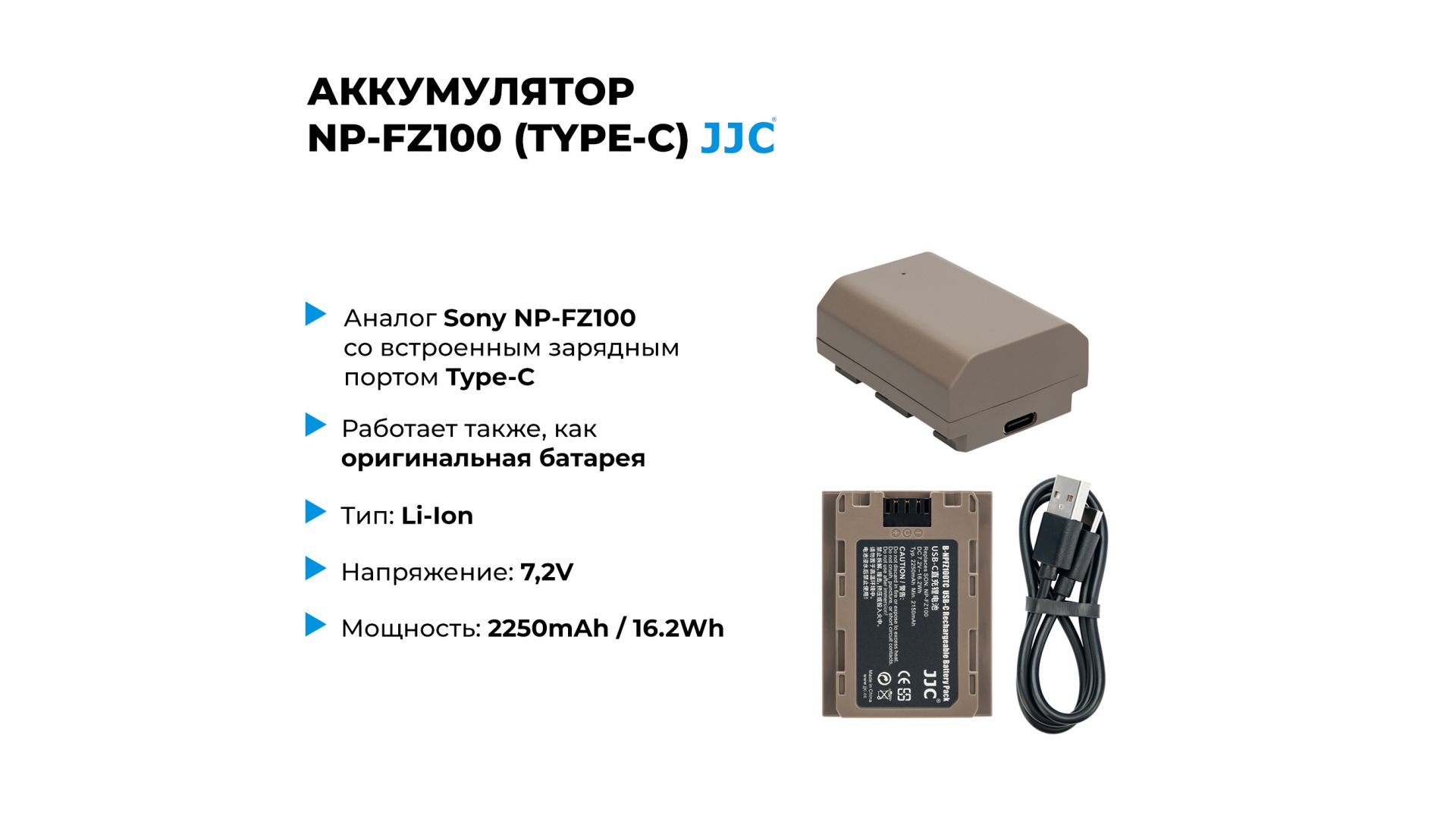 Аккумулятор JJC NP-FZ100 (Type-C)