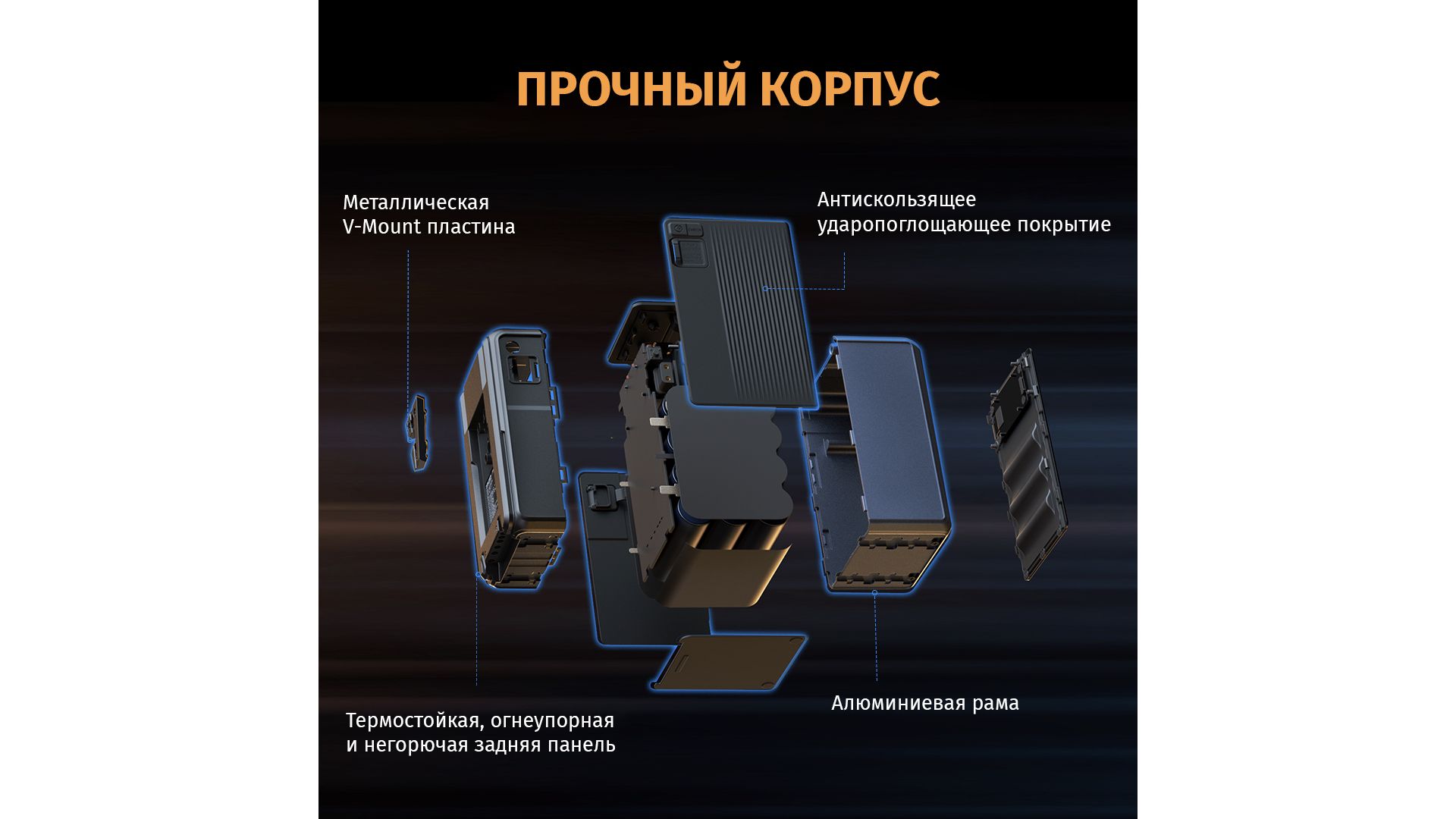 Алюминиевый корпус с теплоотводом, противоскользящими вставками и защитной крышкой портов. Яркий TFT-дисплей отображает заряд и статус работы.