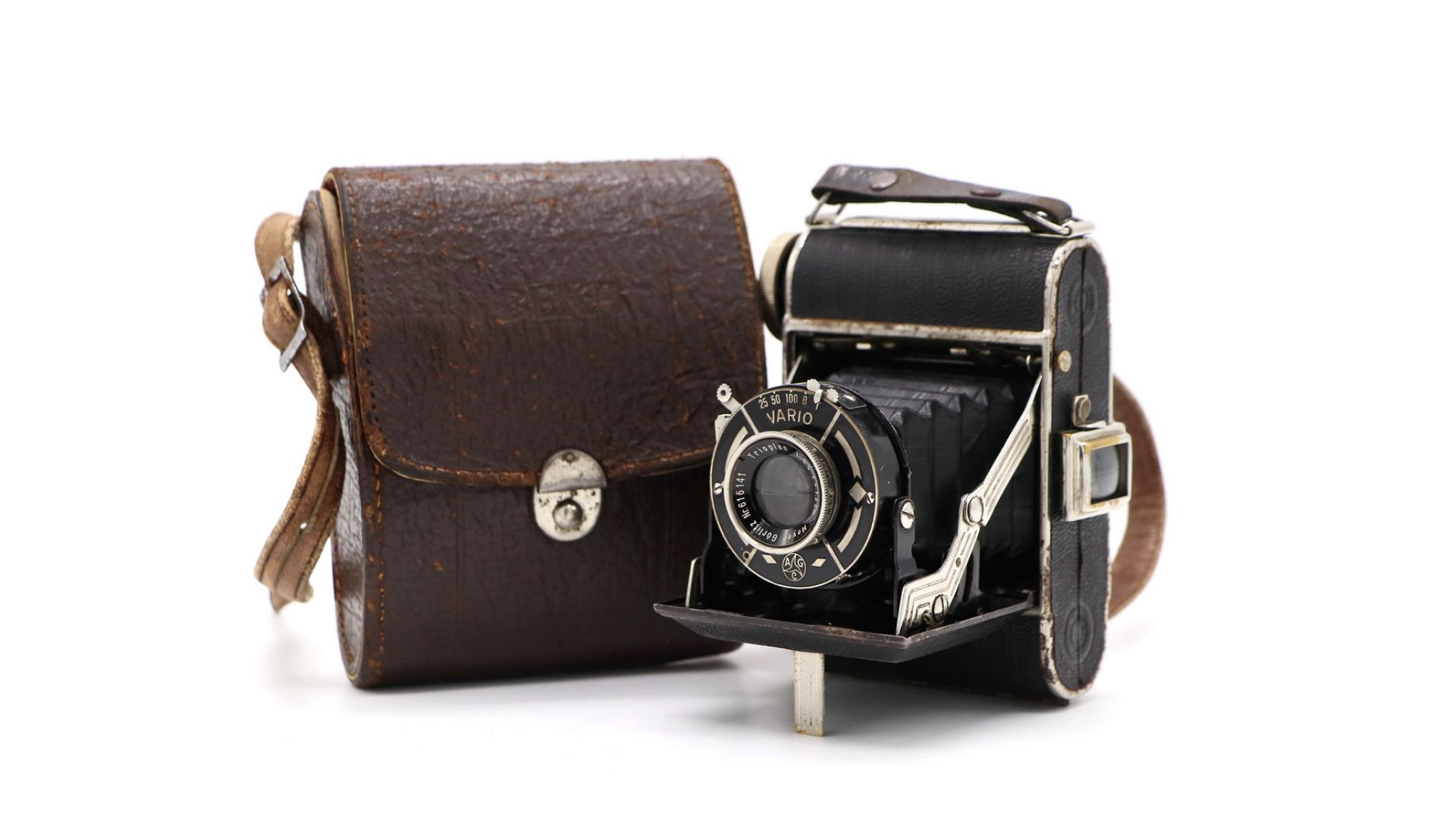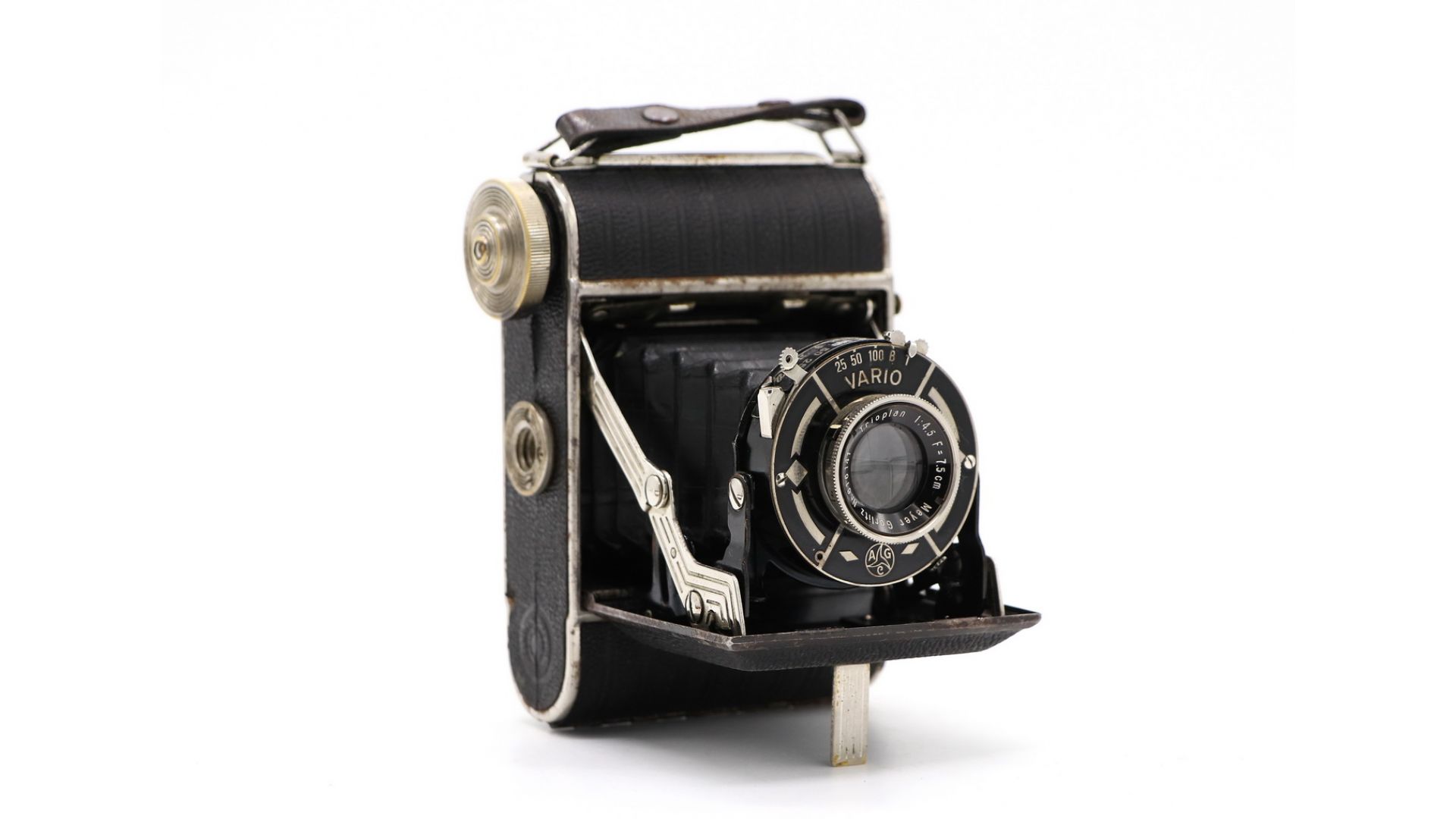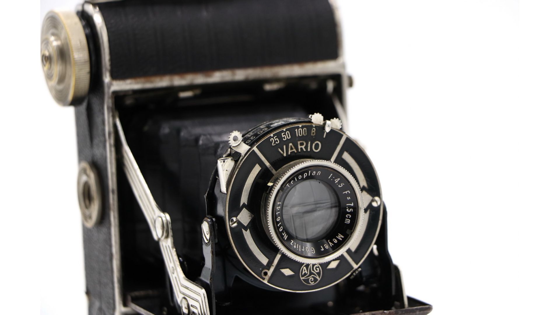 Данный экземпляр укомплектован объективом Trioplan f4,5/7.5 cm в затворе Vario с выдержками 1/25, 1/50 и 1/100 секунды, а также «B» и «T». Превосходный экземпляр для коллекции.