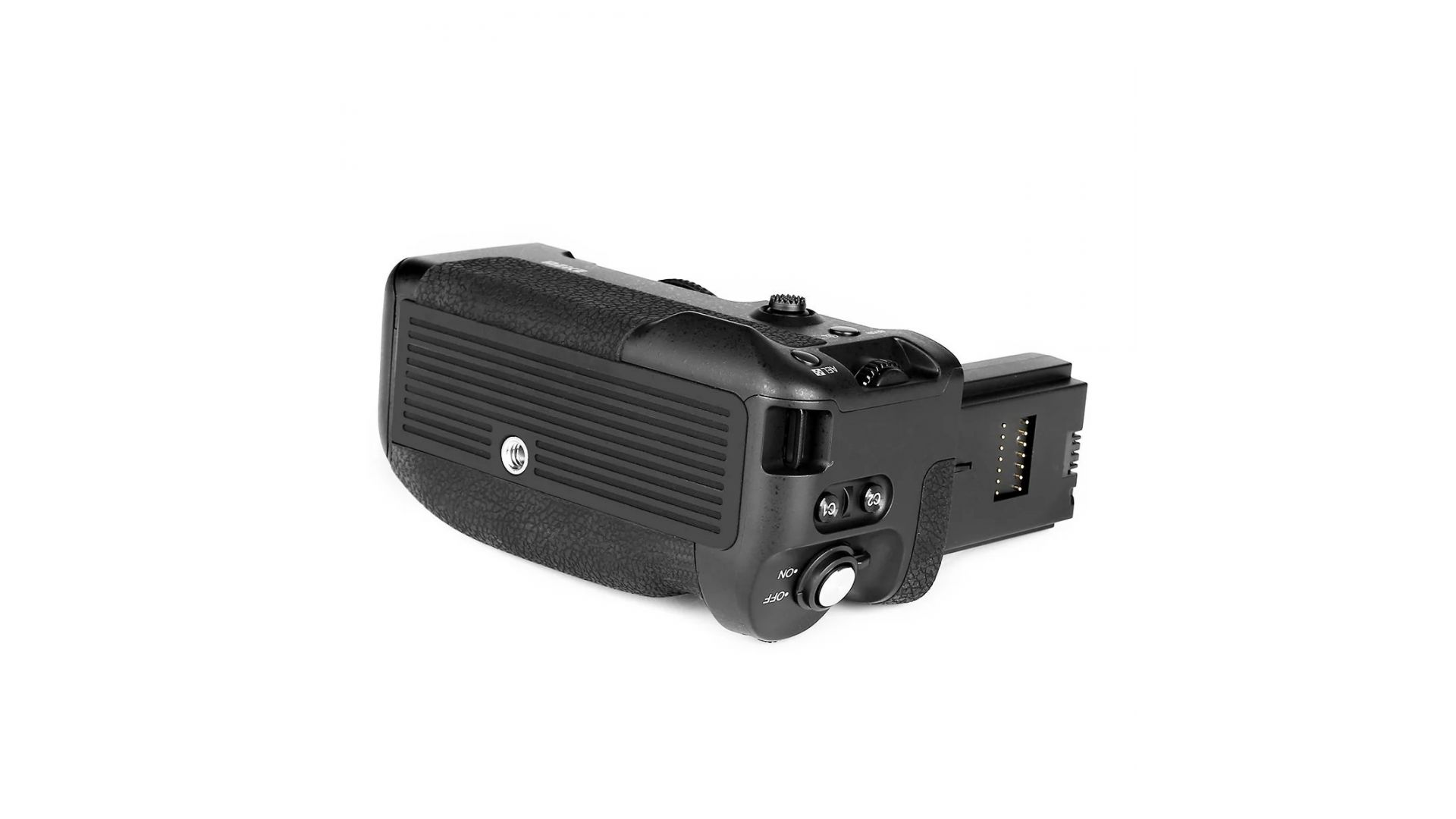 Кроме того, батарейным блоком можно управлять дистанционно с помощью специального пульта, который поставляется в комплекте с устройством. Пульт работает на частоте 2,4 ГГц на расстоянии до 100 м. Кроме включения и спуска затвора, в режиме дистанционного управления доступны следующие функции: таймер, интервальная съёмка, съёмка кадров за определённый промежуток времени, а также режим длинной выдержки