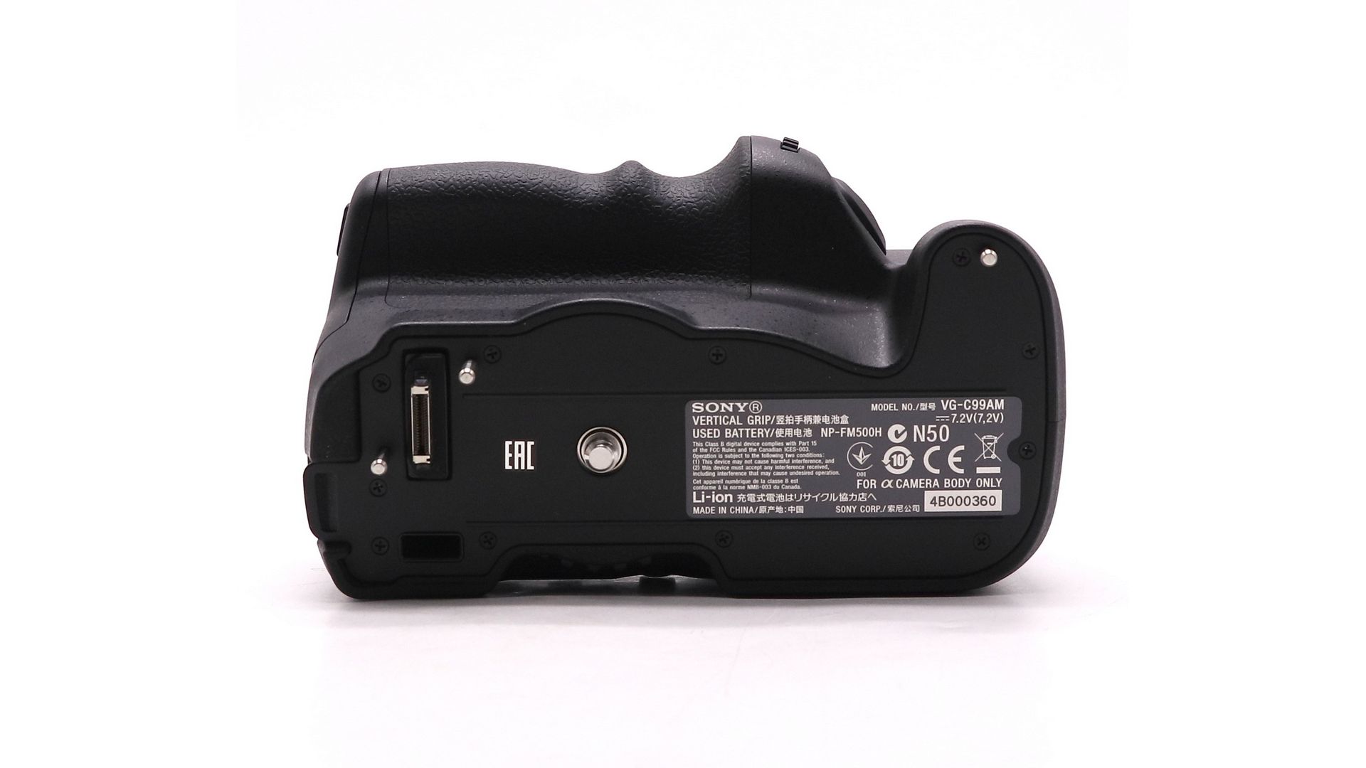 – Технические преимущества: поддерживает до двух аккумуляторов NP‑FM500H; увеличивает общее время работы камеры вдвое; полностью интегрирован в меню камеры; сохраняет доступ ко всем портам и разъёмам.