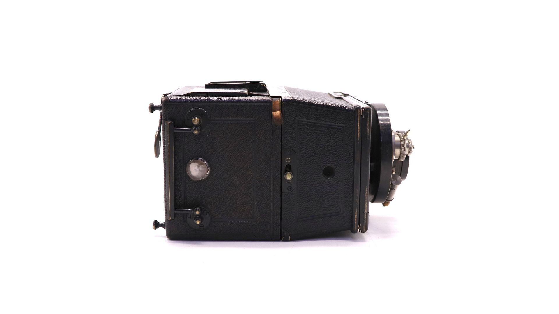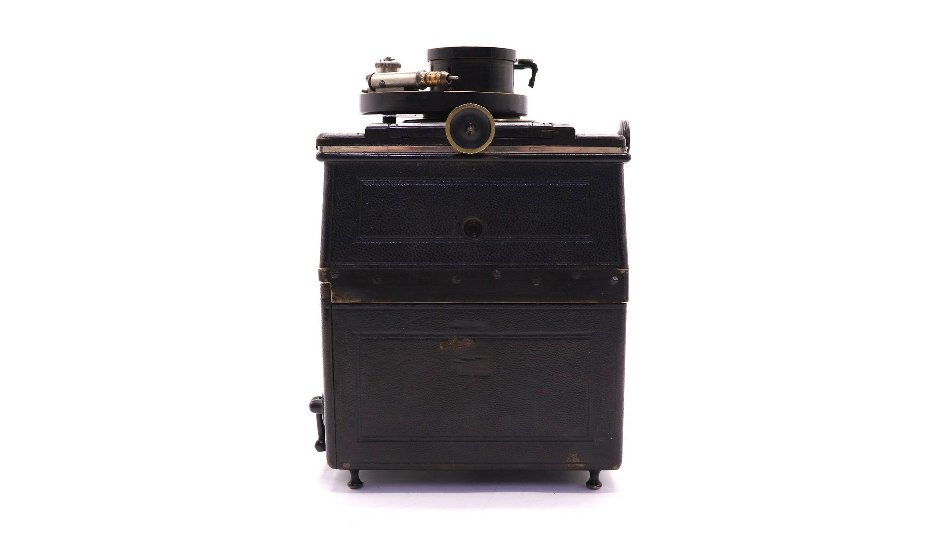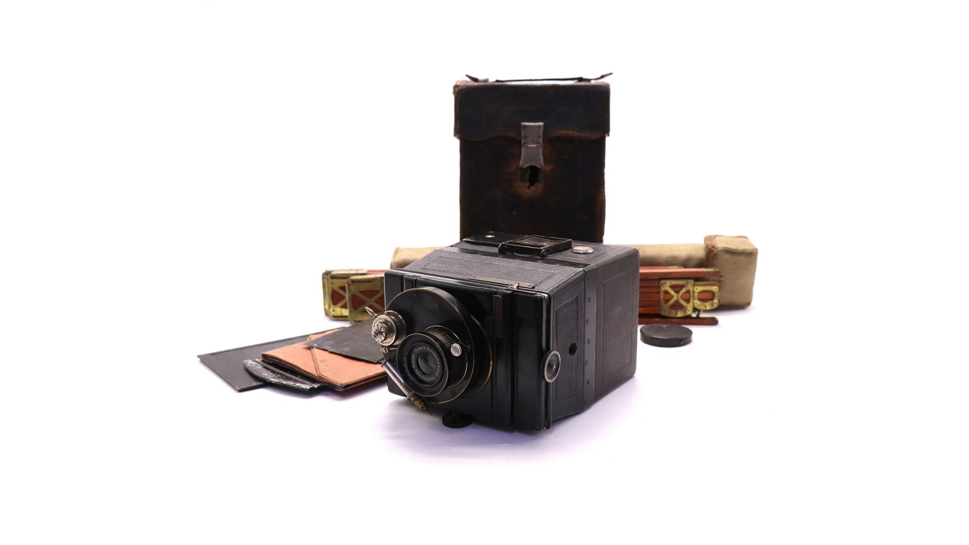 Это прочная трапециевидная камера без мехов. Видоискатель состоит из двух складных частей. Магазин, в котором находятся пластины, съемный.