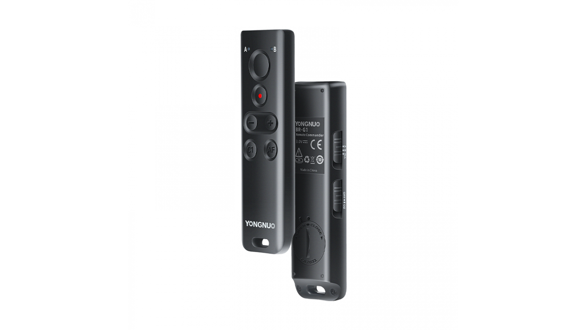Пульт YongNuo BR-G1 совместим с камерами Canon, Nikon, Sony и Fujifilm, позволяя управлять двумя устройствами одновременно, даже разных брендов. Перепрограммируемые кнопки C1 и AF адаптируются под функции конкретной камеры, а разделение на группы «A» и «B» упрощает работу в сложных сценариях.