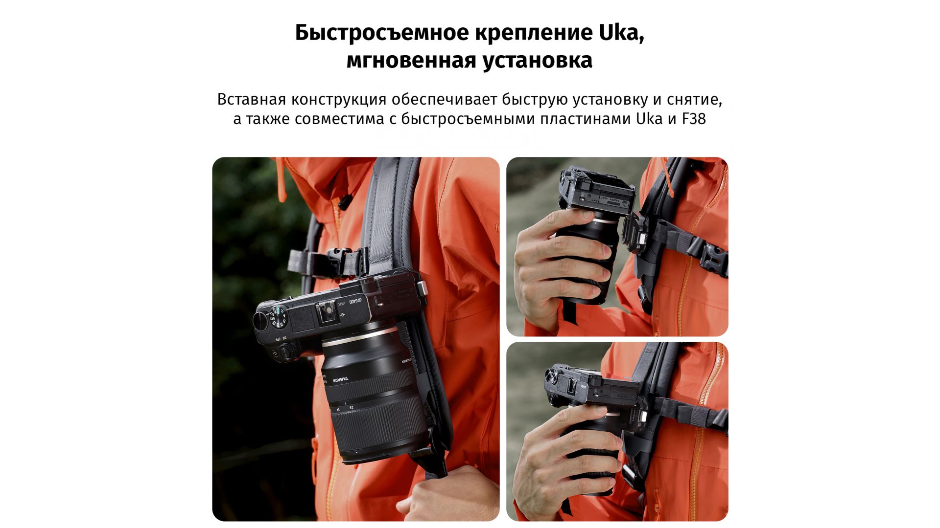 Быстросъемное крепление Uka: выдвижная конструкция обеспечивает быструю установку и снятие и полностью совместима с быстроразъемными пластинами Uka и F38, что обеспечивает максимальную универсальность.
