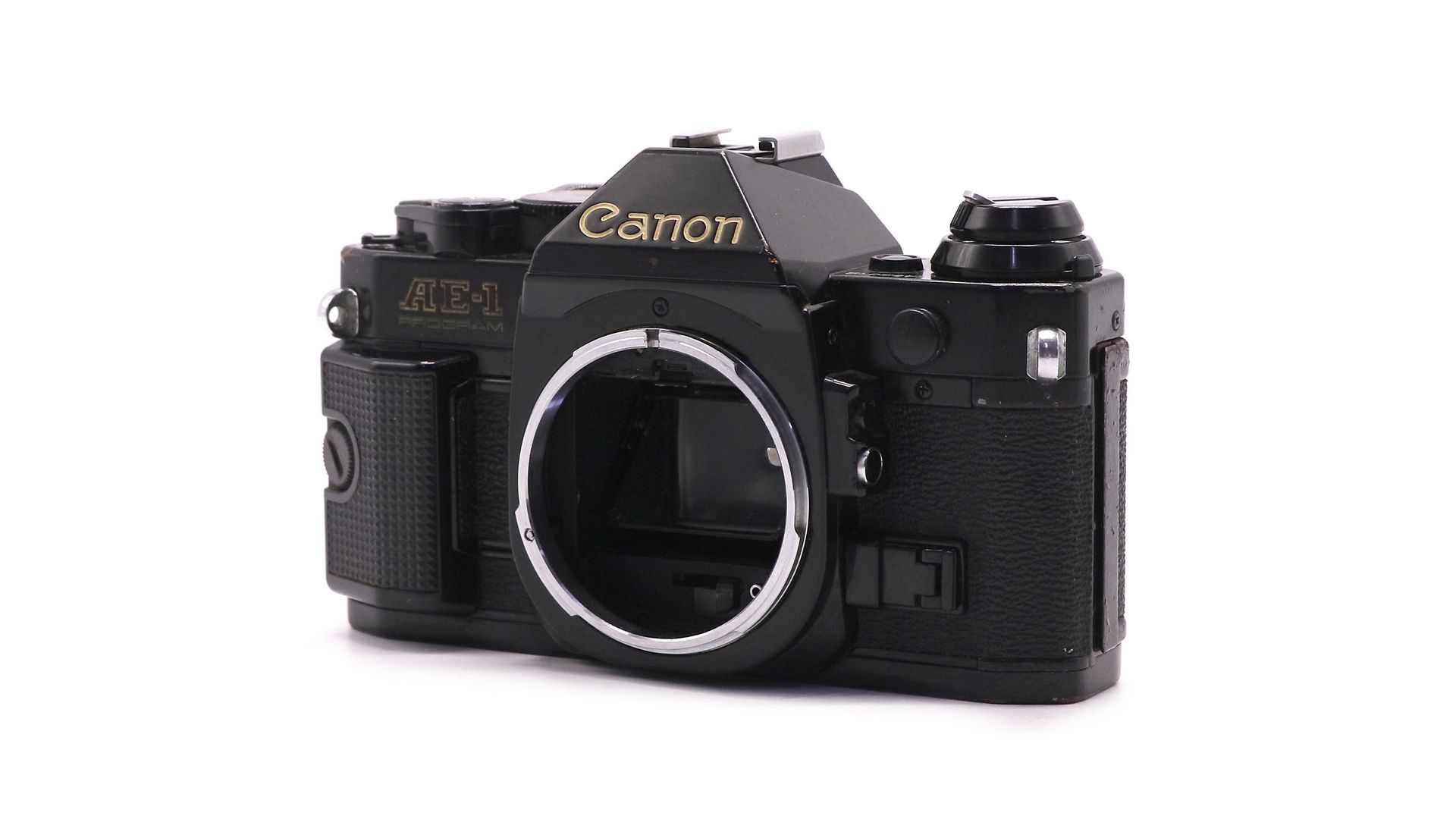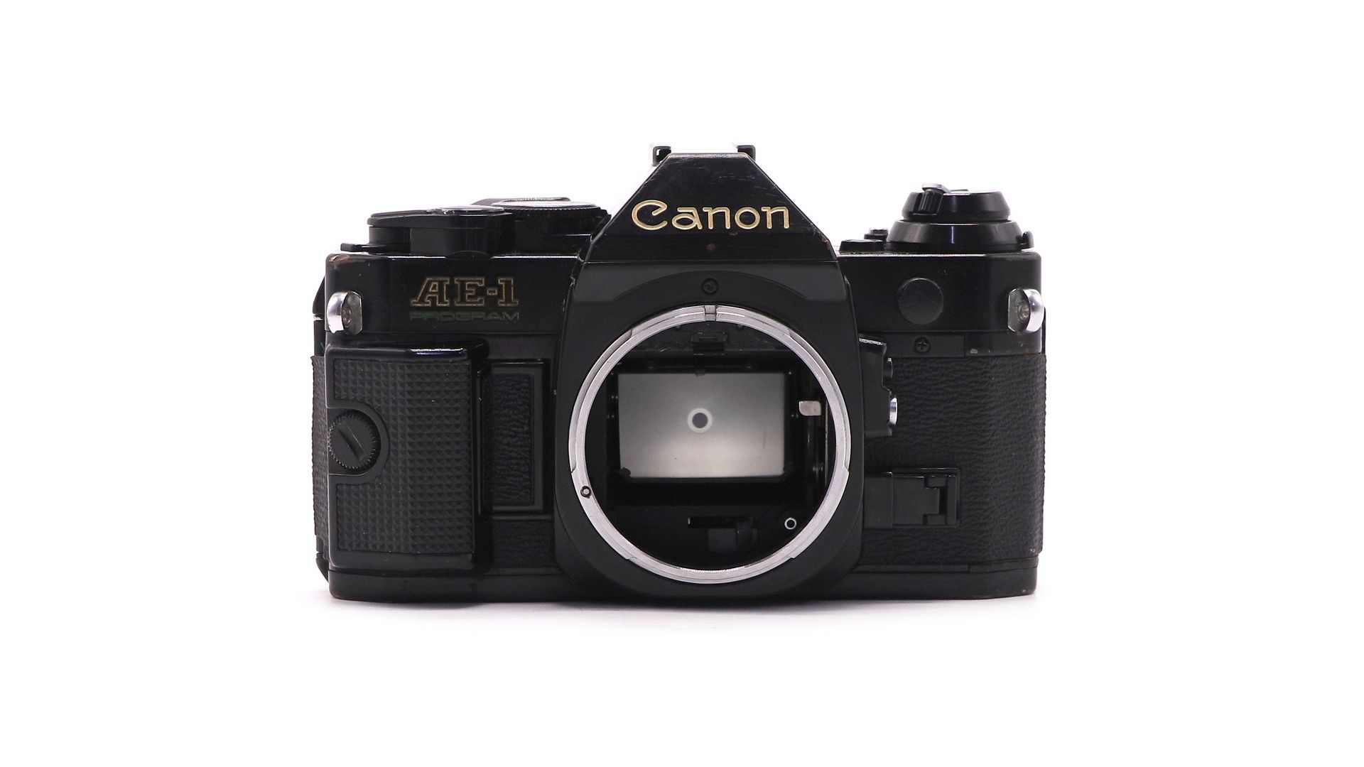 Canon АЕ-1 стал первым в мире фотоаппаратом со встроенным микропроцессором и цифровым управлением экспозиционной автоматикой. Затвор — с электронным управлением, шторно-щелевой с горизонтальным движением матерчатых шторок. Выдержки затвора — от 2 до 1/1000 сек, и «B». Выдержка синхронизации с электронной фотовспышкой — 1/60 с. Корпус — пластмассовый, с открывающейся задней стенкой, скрытый замок. Курковый взвод затвора и перемотки плёнки. Курок имеет два положения — рабочее и транспортное. Обратная перемотка рулеточного типа. Фотоматериал - пленка типа 135, размер кадра 24×36 мм.