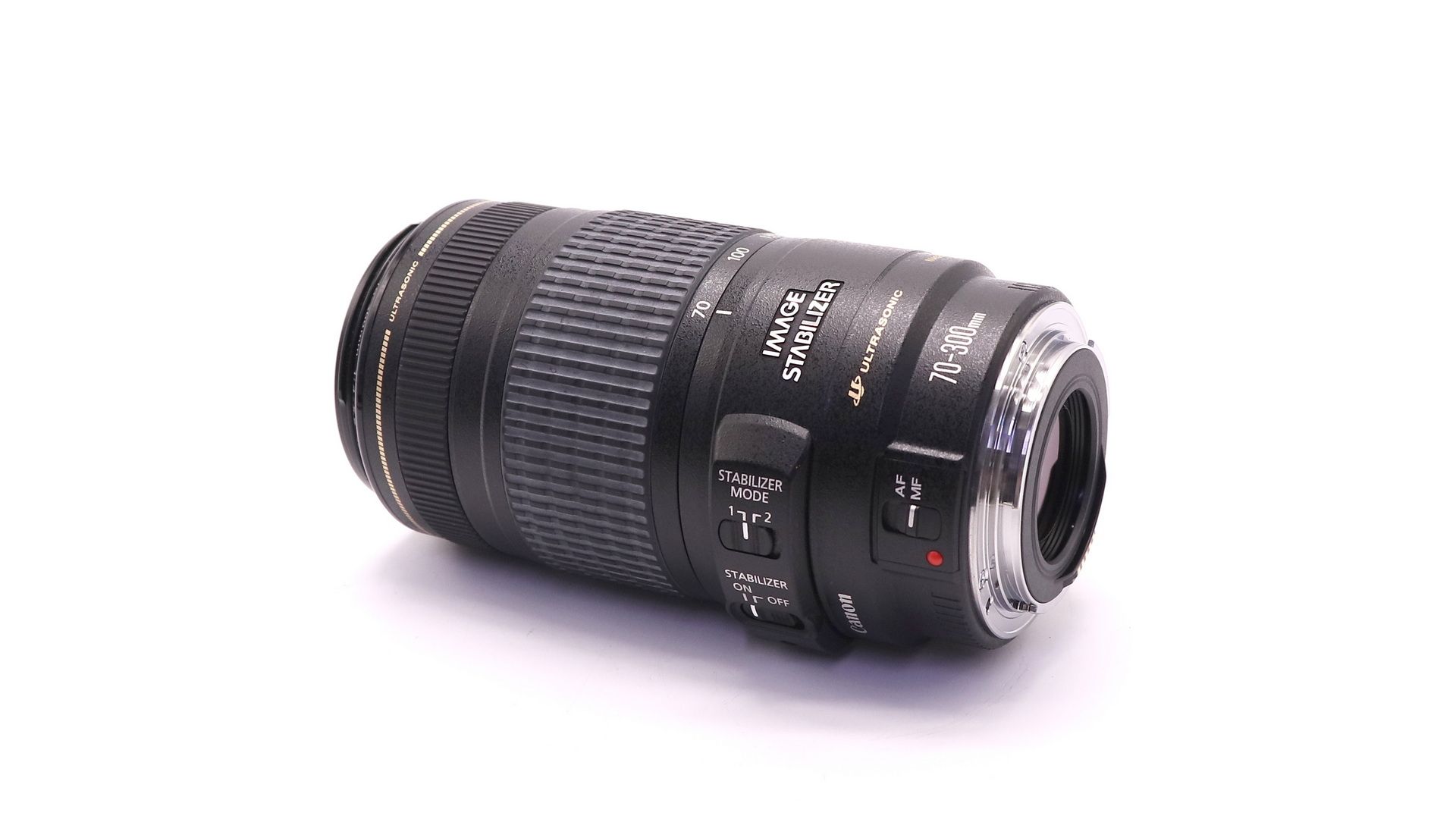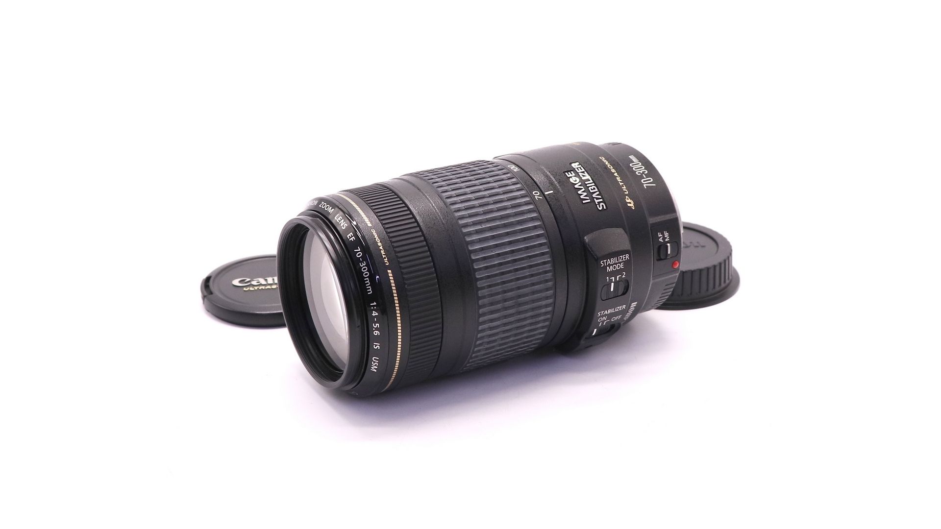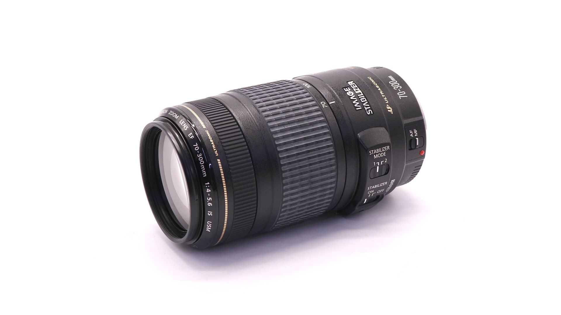 Длиннофокусный объектив Canon EF 70-300mm f/4.0-5.6 IS USM. Данный объектив имеет трехступенчатый стабилизатор изображения (IS), что делает его идеальным для работы без штатива. Это позволяет снимать с рук при выдержке на три ступени длиннее, при этом нерезкость изображения не увеличивается. При горизонтальной съемке с проводкой стабилизатор изображения можно настроить так, чтобы коррекция проводилась только для вертикального направления, а при установке на штатив стабилизатор изображения отключается. Практически круглое отверстие диафрагмы, управляемое электромагнитно, делает более ровным размытие тех частей изображения, которые находятся не в фокусе, а также позволяет выделить объекты в фокусе на размытом фоне. Объектив идеально подойдет фотографам, снимающим природу или спорт.