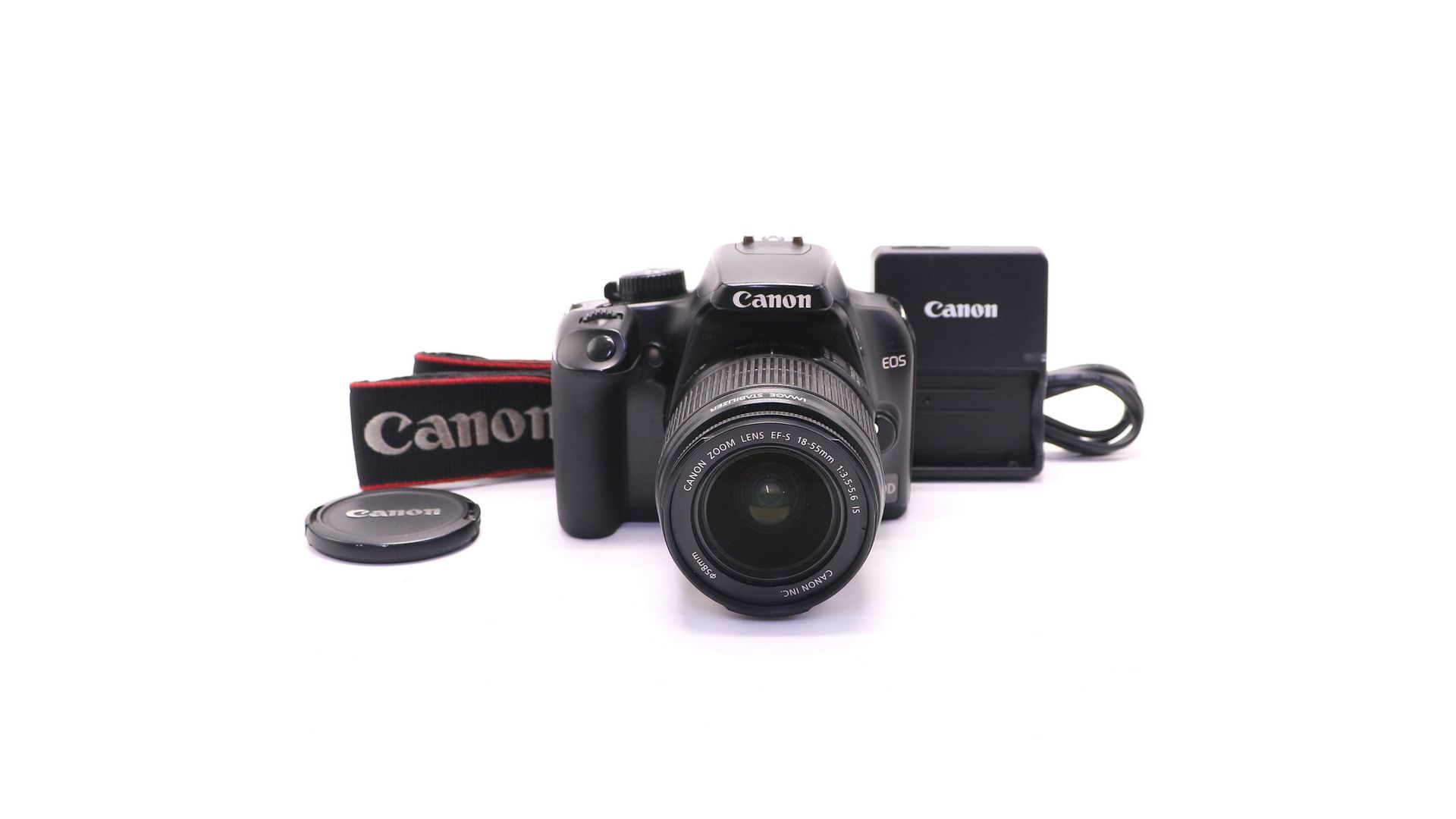 Комплектация:Объектив Canon EF-S 18-55mm f/3.5-5.6 IS, аккумулятор, зарядное устройство, ремень, крышка объектива.