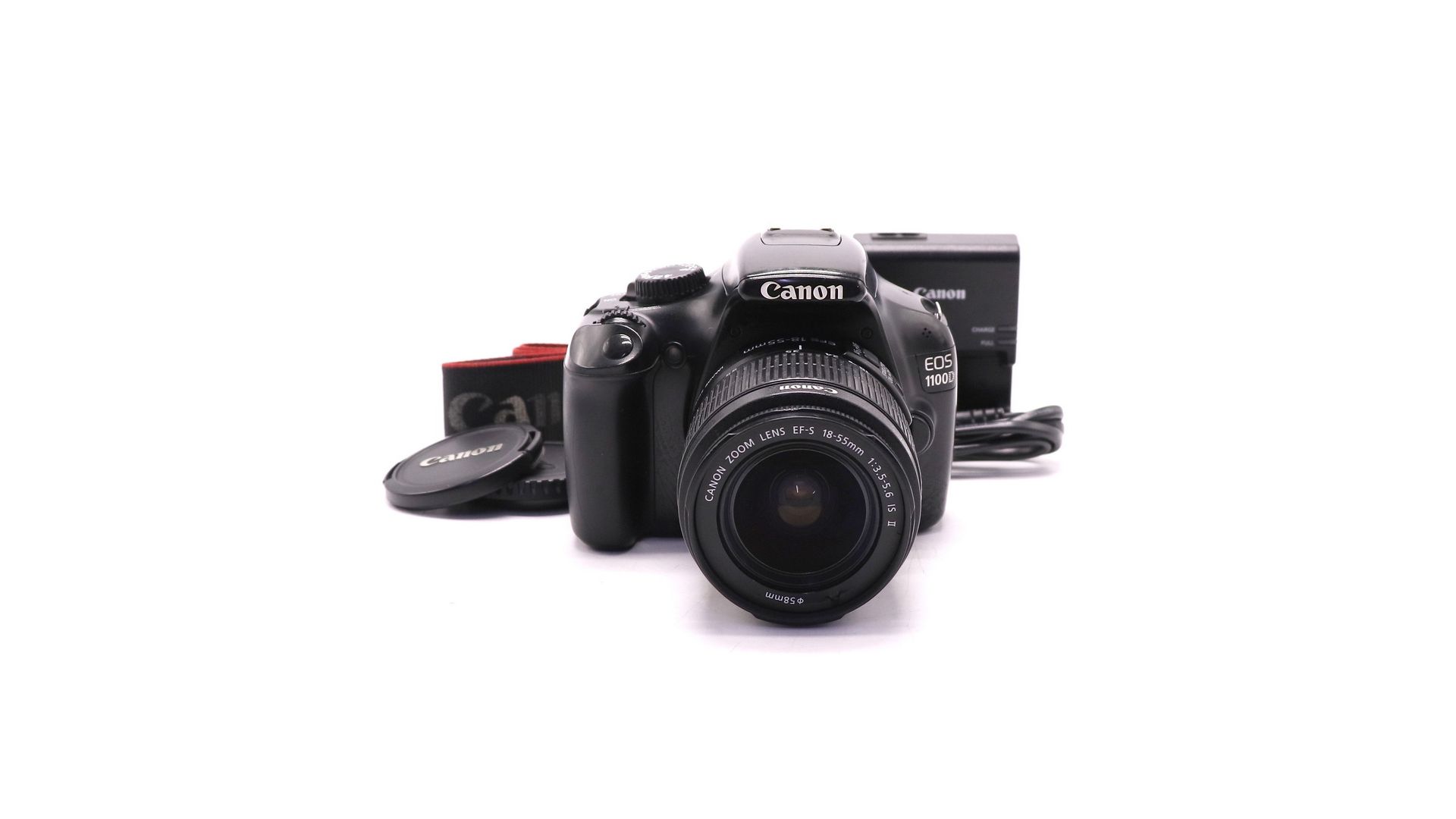 Комплектация:Объектив Canon EF-S 18-55mm f/3.5-5.6 IS II, аккумулятор, крышка объектива, ремень, зарядное устройство.
