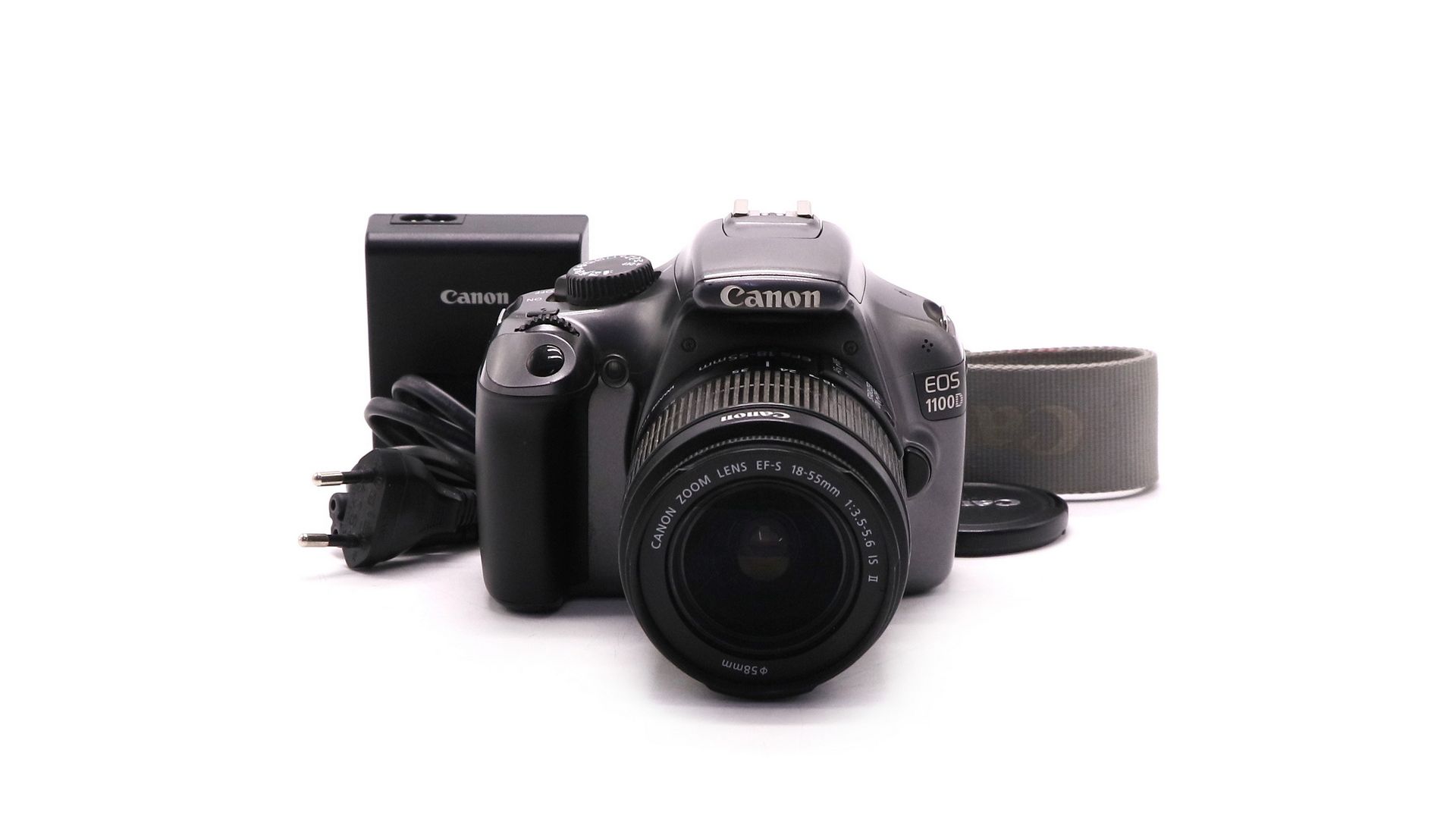 Комплектация:Объектив Canon EF-S 18-55mm 3.5-5.6 IS II, аккумулятор, зарядное устройство, передняя крышка, ремень.