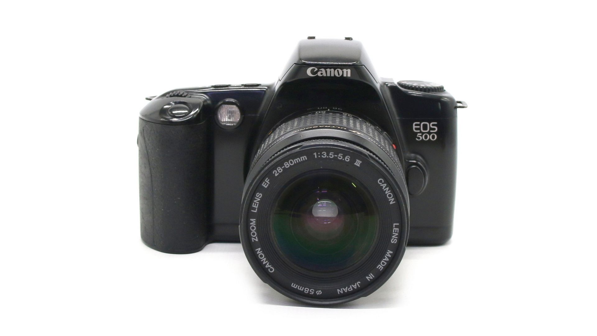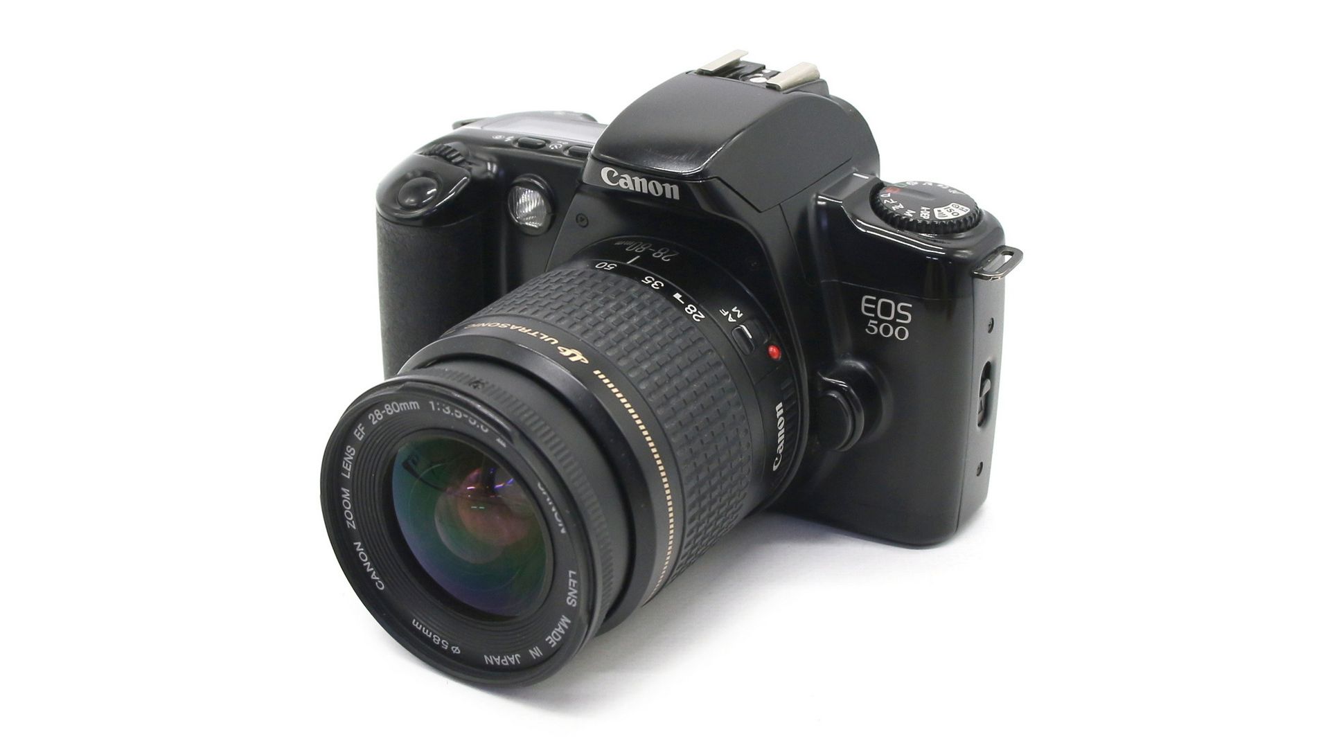 Отличается ускоренной зарядкой фотоплёнки, взводом затвора и перемоткой фотоплёнки встроенным электроприводом. Ввод значений светочувствительности материала — DX-кодом или вручную. Информация о работе фотокамеры отображается на ЖК-дисплее. Режимы автоматики (приоритет выдержки; приоритет диафрагмы; режим программной линии, программы: портрет, пейзаж, спорт, макросъёмка). Источник питания — два элемента CR123A/DL123A. Canon EOS 500 - простая в обращении пленочная фотокамера с хорошим функционалом.