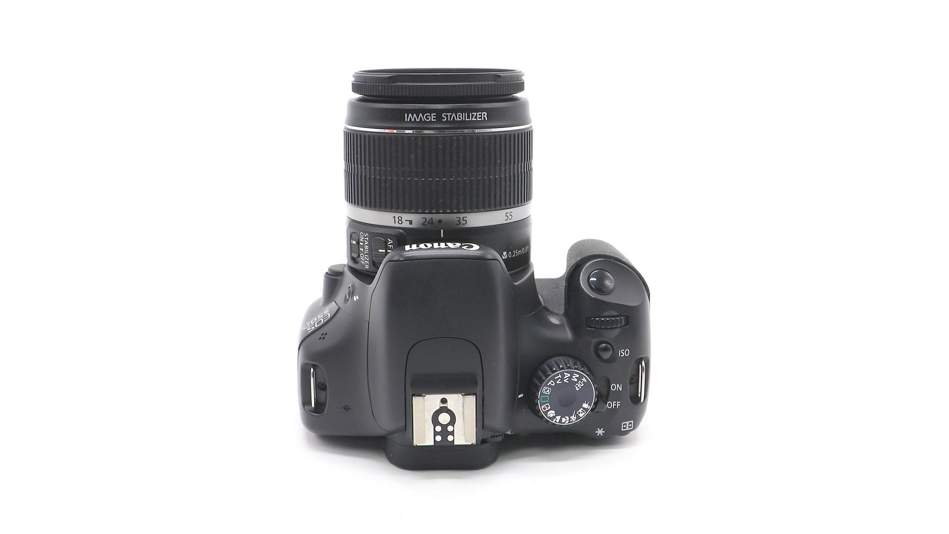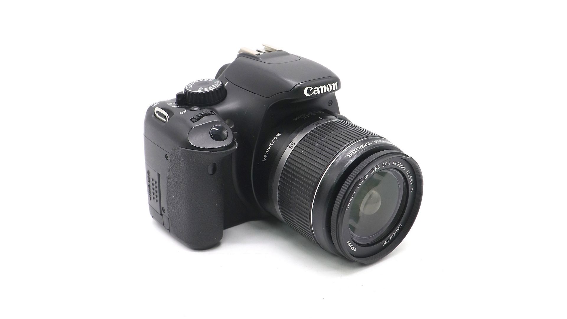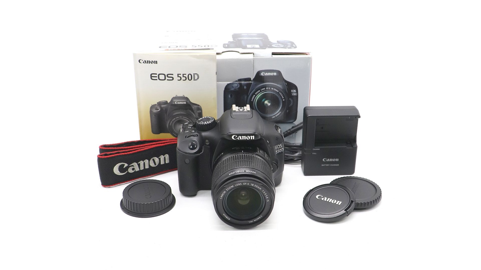 Комплектация:Коробка, зарядное устройство, аккумулятор, AV-кабель, USB-кабель, ремень, крышки, объектив Canon EF-S 18-55mm f/3.5-5.6 IS.