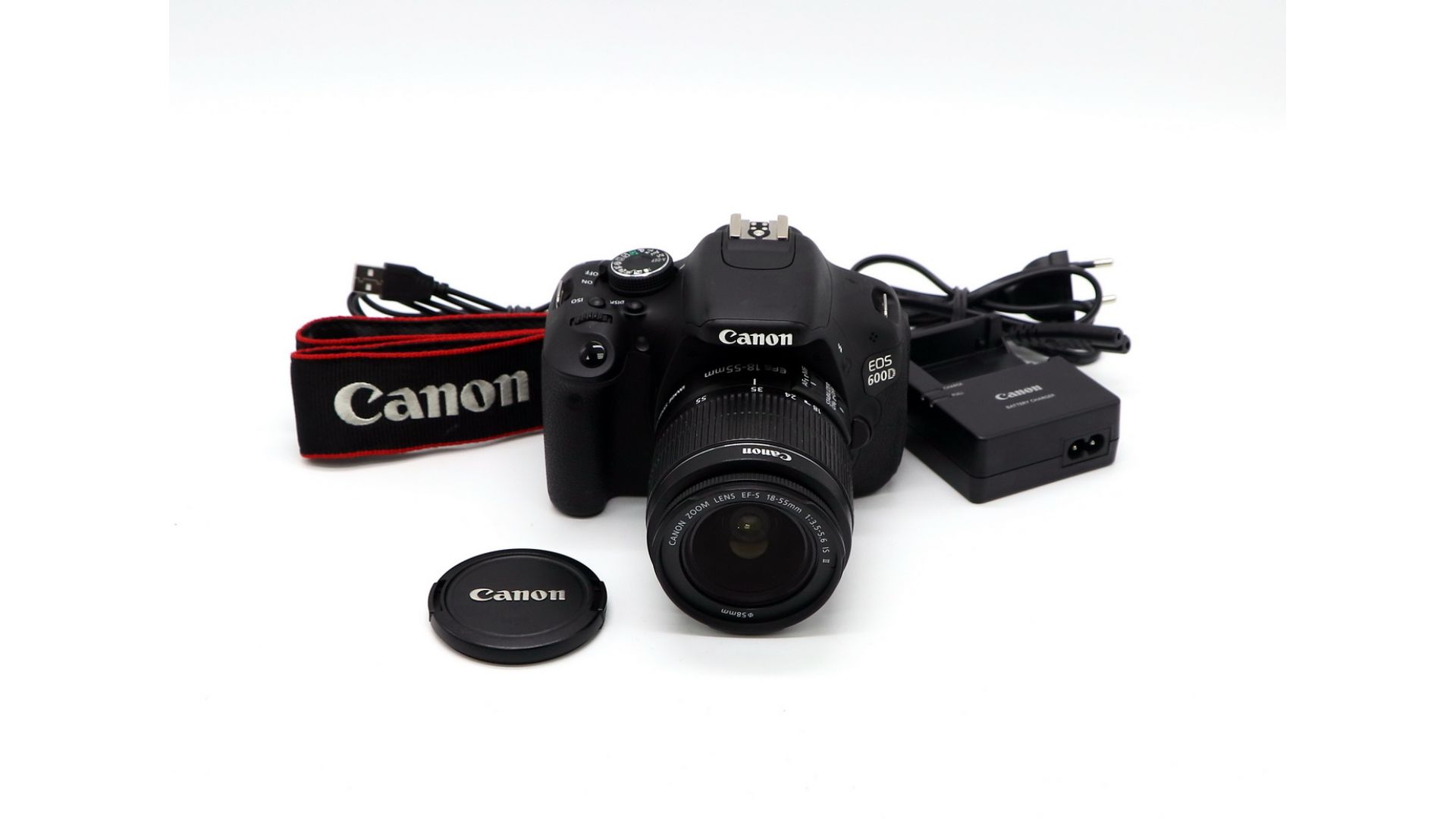 Комплектация:Аккумулятор, зарядное устройство, объектив Canon EF-S 18-55mm 3.5-5.6 IS II, крышка объектива, ремень, документы.