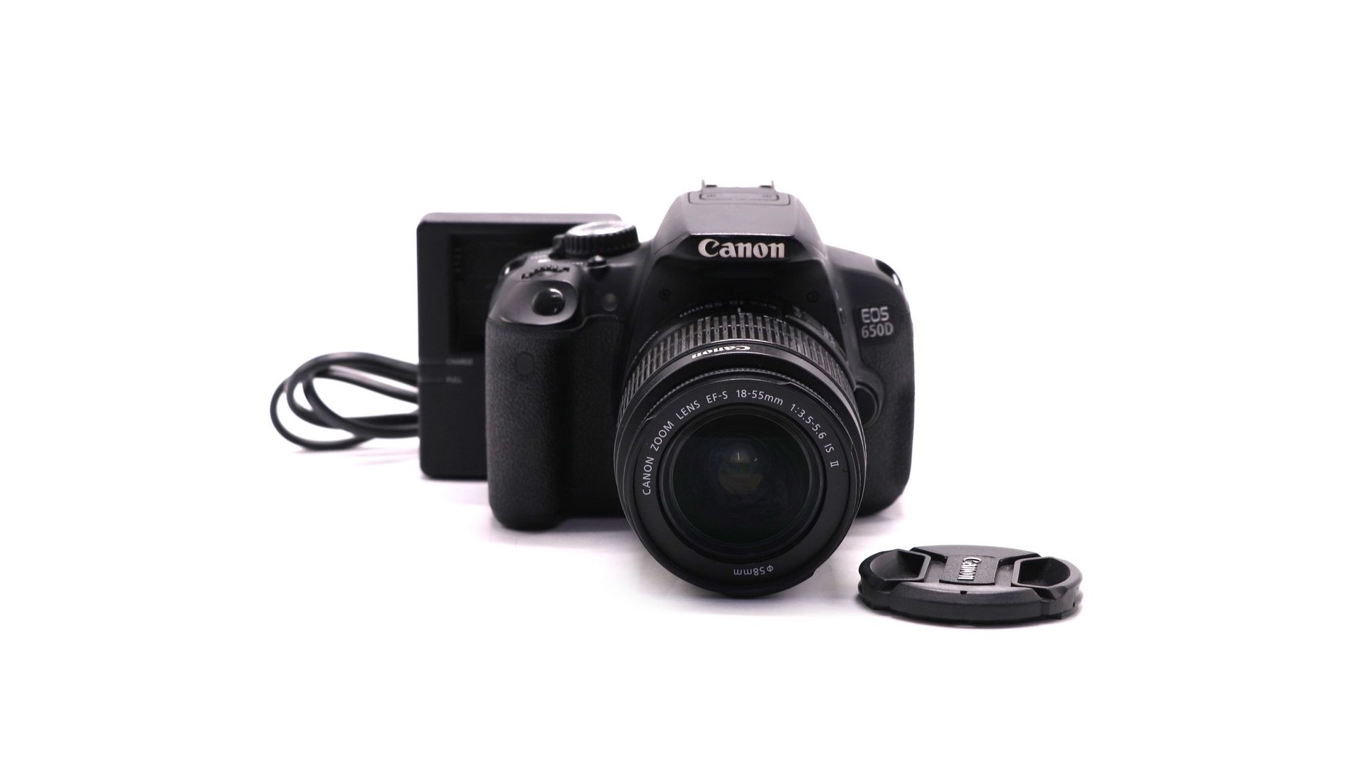 Комплектация:Аккумулятор, зарядное устройство, крышка байонета, объектив Canon EF-S 18-55mm f/3.5-5.6 IS II, крышка объектива.