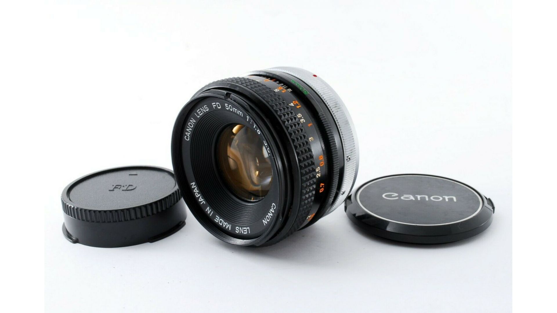 Cветосильный объектив Canon FD 1.8/50mm S.C. в отличном состоянии, присутствуют небольшие следы эксплуатации. В комплекте крышки.