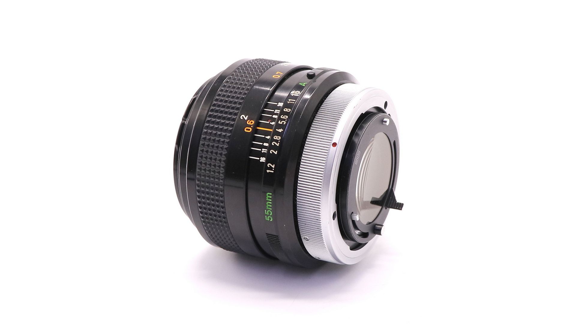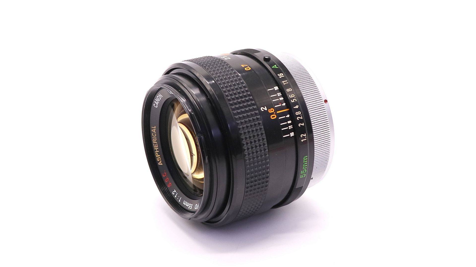 Canon FD 55mm f/1.2 S.S.C. Aspherical - верхсветосильный мануальный объектив с постоянным фокусным расстоянием для 35мм зеркальных камер системы Canon FD. В оптической схеме использован асферический элемент, объектив имеет многослойное просветление. Через переходник может использоваться на современных цифровых зеркальных камерах. В диафрагме 8 лепестков. Минимальная дистанция фокусировки - 0.6 м.