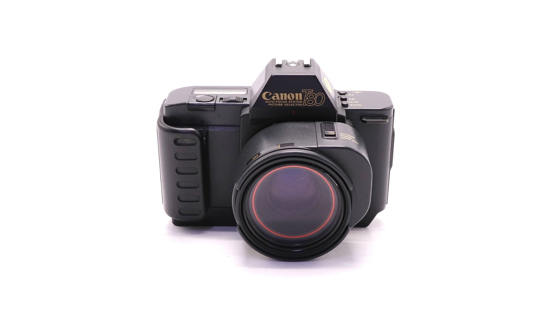 Canon T80 — первый малоформатный однообъективный зеркальный фотоаппарат фирмы Canon, оснащённый полноценным заобъективным автофокусом. Камера имеет встроенное электрическое лентопротяжное устройство, за счёт чего не имеет ни рулетки обратной перемотки, ни курка взвода. Питание фотоаппарата и привода автофокуса в объективе обеспечиваются 4 батарейками типа AAA. Фотоматериал - типа 135, размер кадра - 24×36 мм.