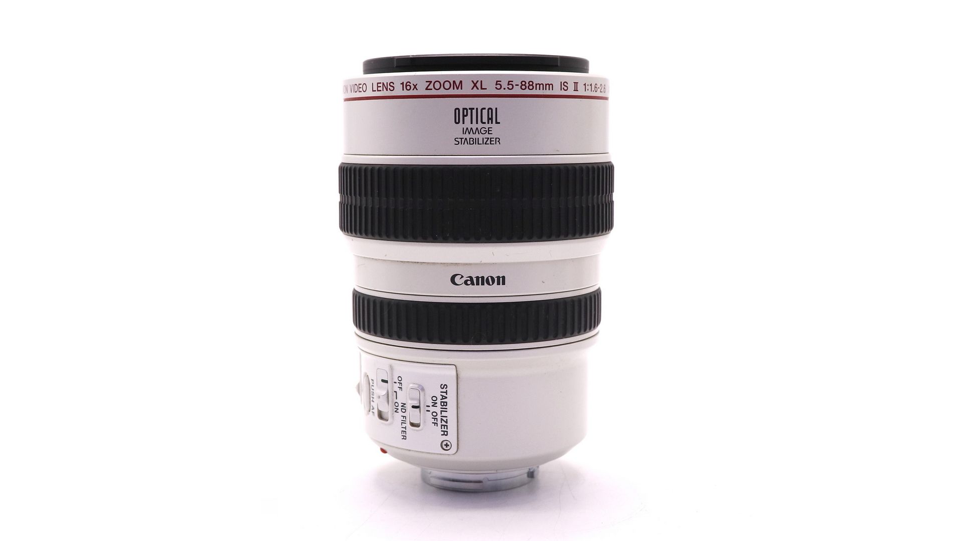 Объектив Canon Video Lens 16x Zoom XL 5.5-88 мм f/1.6-2.6 IS — это профессиональный зум-объектив, предназначенный для видеокамер Canon серии XL (XL1, XL1S, XL2). С фокусным расстоянием от 5.5 до 88 мм и максимальной диафрагмой f/1.6–2.6, он предоставляет отличную резкость и яркость изображения. Объектив оснащён системой оптической стабилизации SuperRange IS, которая минимизирует вибрации, обеспечивая плавную и стабильную съёмку, даже при движении камеры. Моторизованный и ручной зум, а также кольца фокусировки и зума с плавным ходом делают управление удобным и точным. Это идеальный выбор для профессиональных видеографов, работающих с видеокамерами Canon XL.