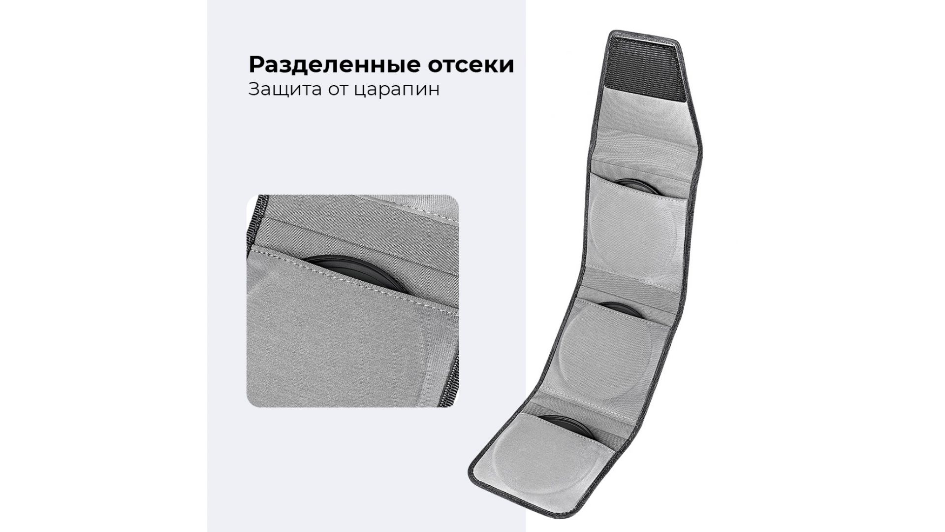 Чехол для фильтров K&F Concept с 3 карманами вмещает 3 круглых фильтра диаметром до 82 мм (37 мм, 40,5 мм, 43 мм, 46 мм, 49 мм, 52 мм, 55 мм, 58 мм, 62 мм, 67 мм, 72 мм, 77 мм, 82 мм)