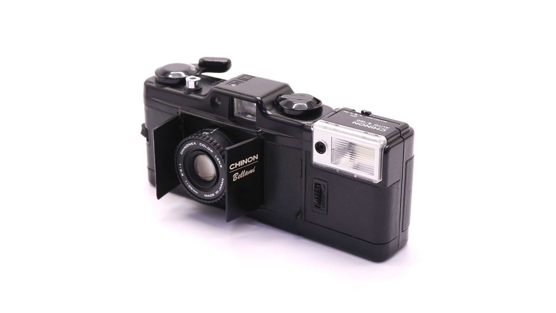 Chinon Bellami - это компактная 35-мм камера от Chinon. Вместо раздвижной крышки объектива Bellami имеет характерный дизайн "амбарной двери" (напоминает Voigtländer Vitessa). Крышка объектива открывается нажатием на рычаг подачи пленки.