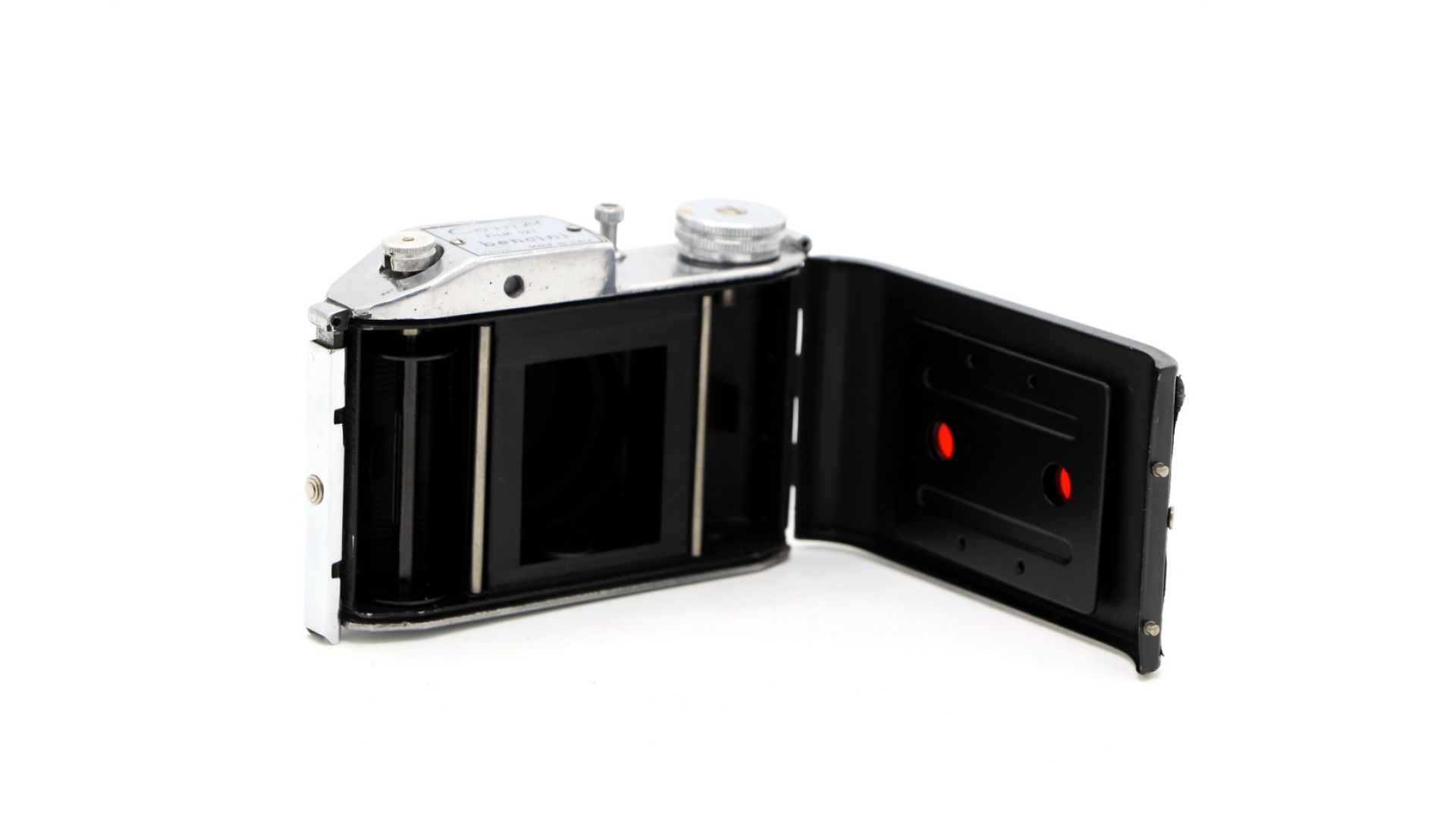 Корпус литой, из алюминиевого сплава. Его управление ограничено мгновенным (1/50 секунды) затвором или затвором «B». Делает 16 кадров, форматом 4x4 см. Пленка - типа 127. Интересный экземпляр для коллекции.