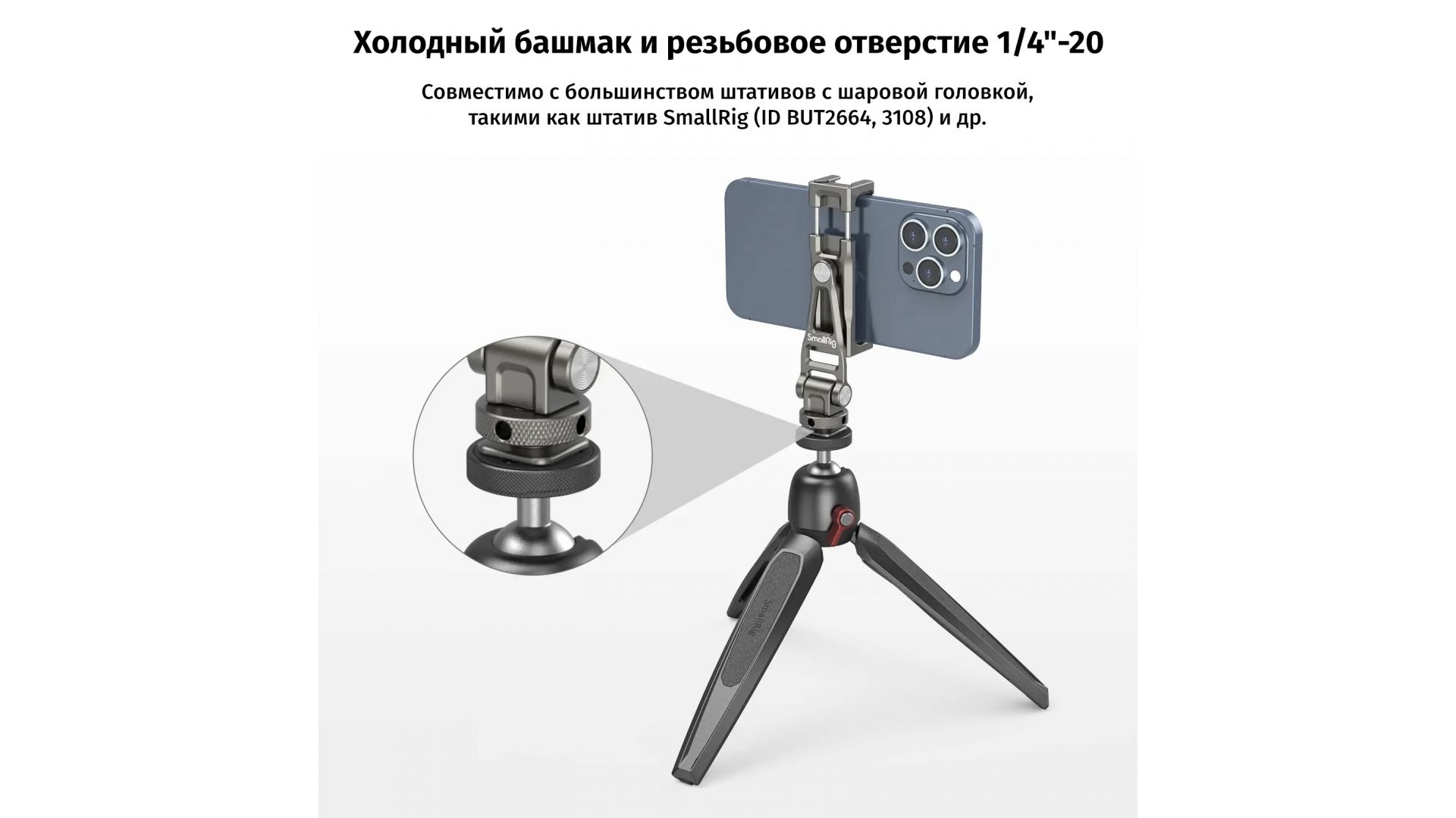 Держатель смартфона SmallRig 3559 — универсальный аксессуар для съёмки с мобильных устройств, обеспечивающий стабильность и гибкость.