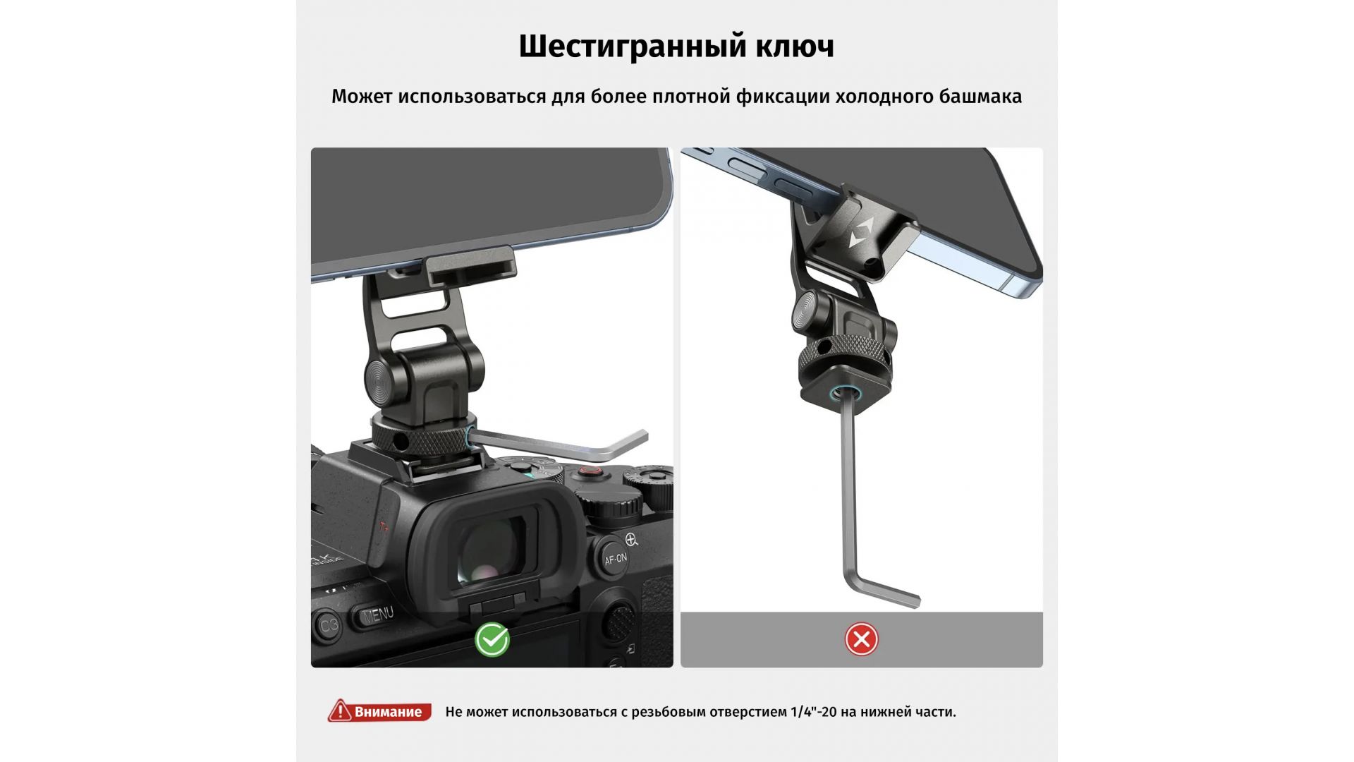 Универсальное крепление с холодным башмаком и резьбой 1/4"-20 — совместимость с различным оборудованием