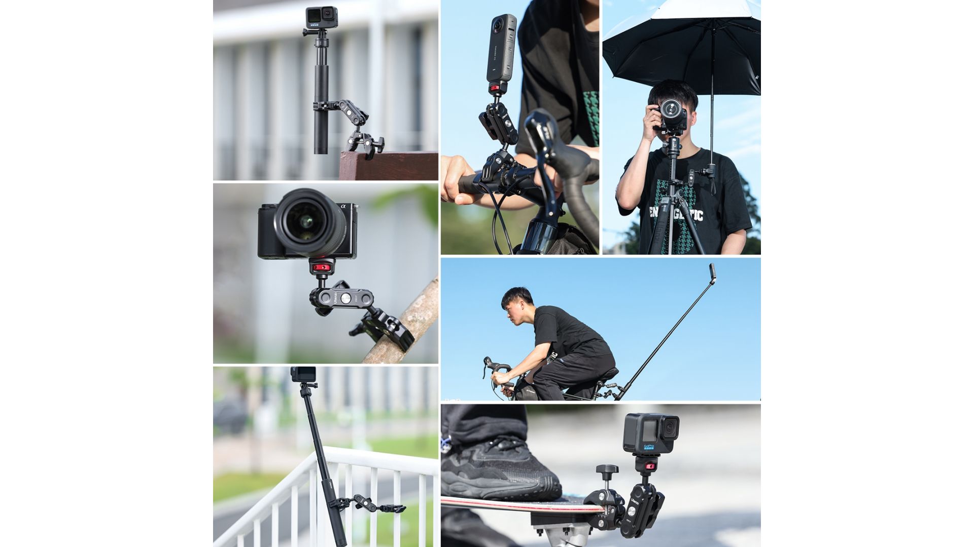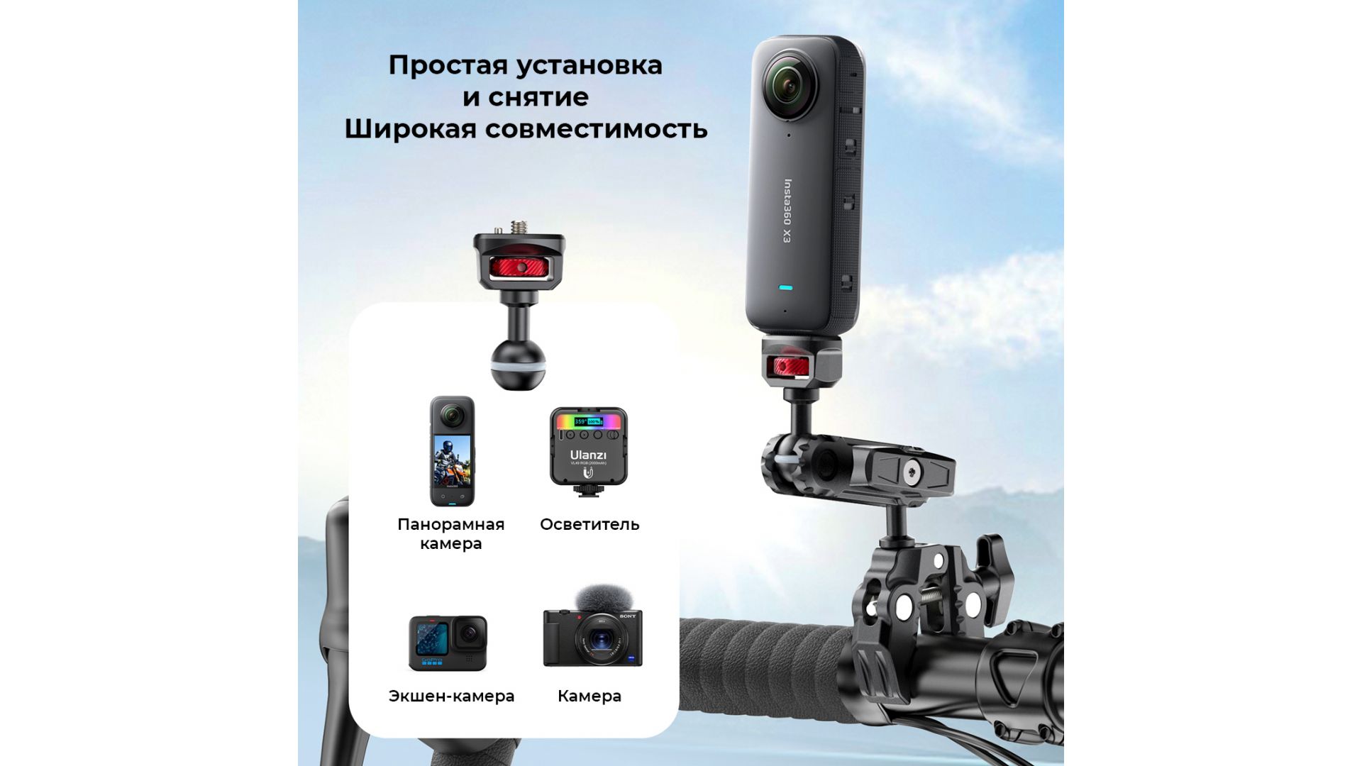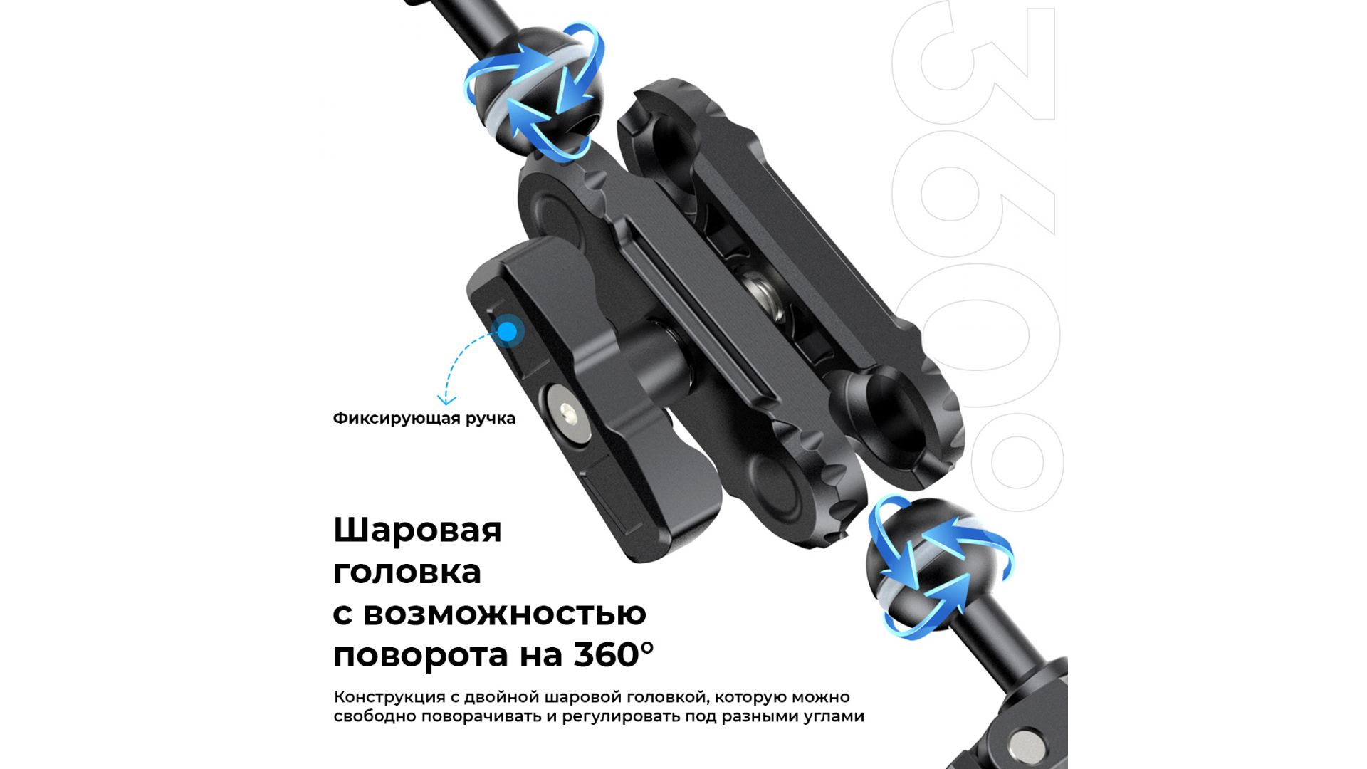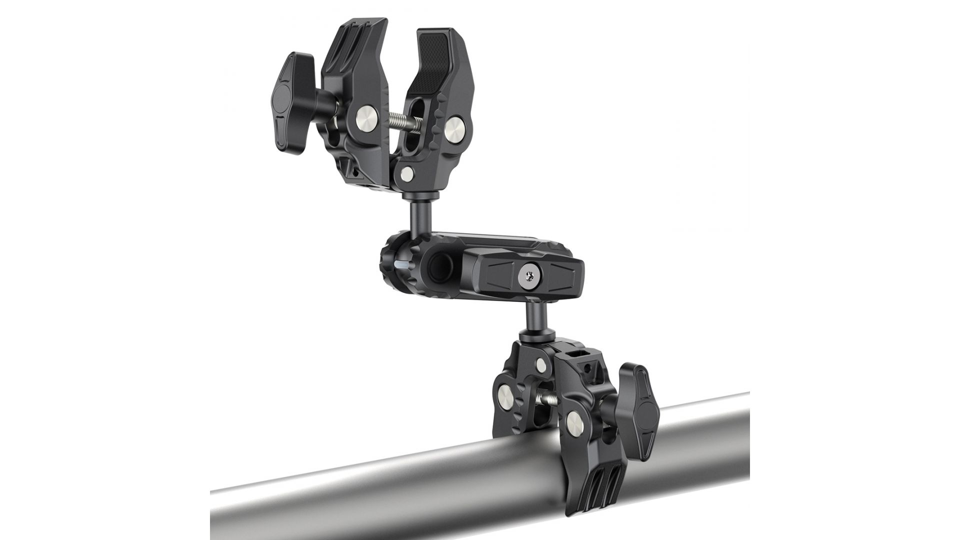 Ulanzi CO17 Super Clamp с двойной шаровой головкой Magic Arm. Этот универсальный зажим Super Clamp легко крепится к мотоциклам, велосипедам, штативам, столам и многому другому. Его противоскользящая конструкция обеспечивает надежное сцепление с поверхностями шириной от 12 до 58 мм. Двойная шаровая головка имеет гибкую регулировку на 360°, давая возможность съемки под разными углами. Вы можете менять шаровые головки, чтобы расширить свои возможности, а грузоподъемность составляет 3,5 кг. Изготовленная из легкого, но прочного алюминиевого сплава, она идеально подходит для путешествий и ежедневного использования. Зажим Super Clamp обеспечивает максимальную гибкость.