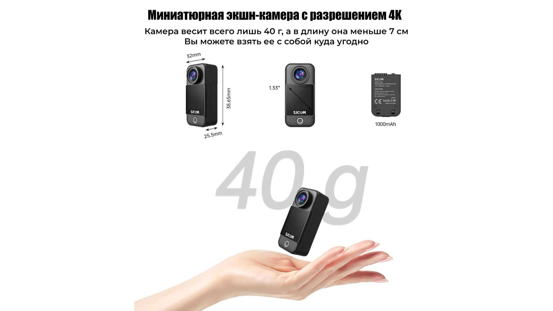Экшен-камера SJCAM C300 4K (20 Мп, 8×, 360 мин., водонепроницаемая)