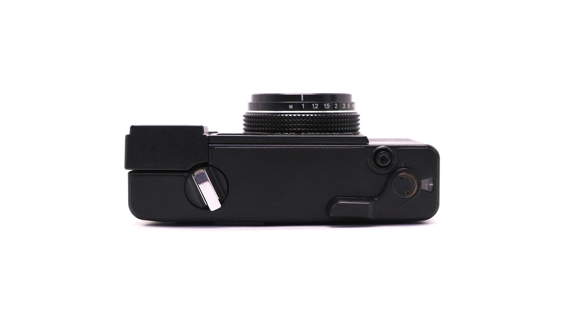 Оснащен курковым взводом затвора и перемотки плёнки. Курок имеет два положения — транспортное и рабочее. Имеется блокировка спусковой кнопки при хранении и переноске. Фокусировка ручная по шкале расстояний или символов. Пределы фокусировки от 1,1 м до бесконечности. Встроенная фотовспышка, включение фотовспышки при выдвижении её в рабочее положение. Источник питания фотоаппарата — два элемента АА. Очень интересный экземпляр для коллекции и творческих экспериментов.