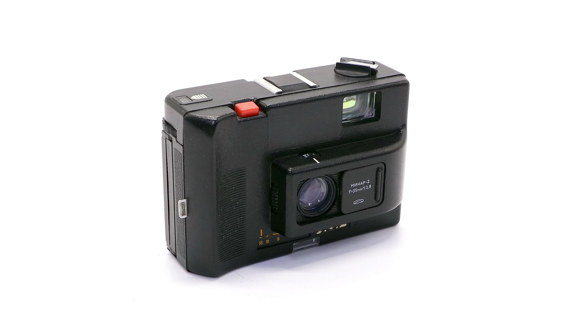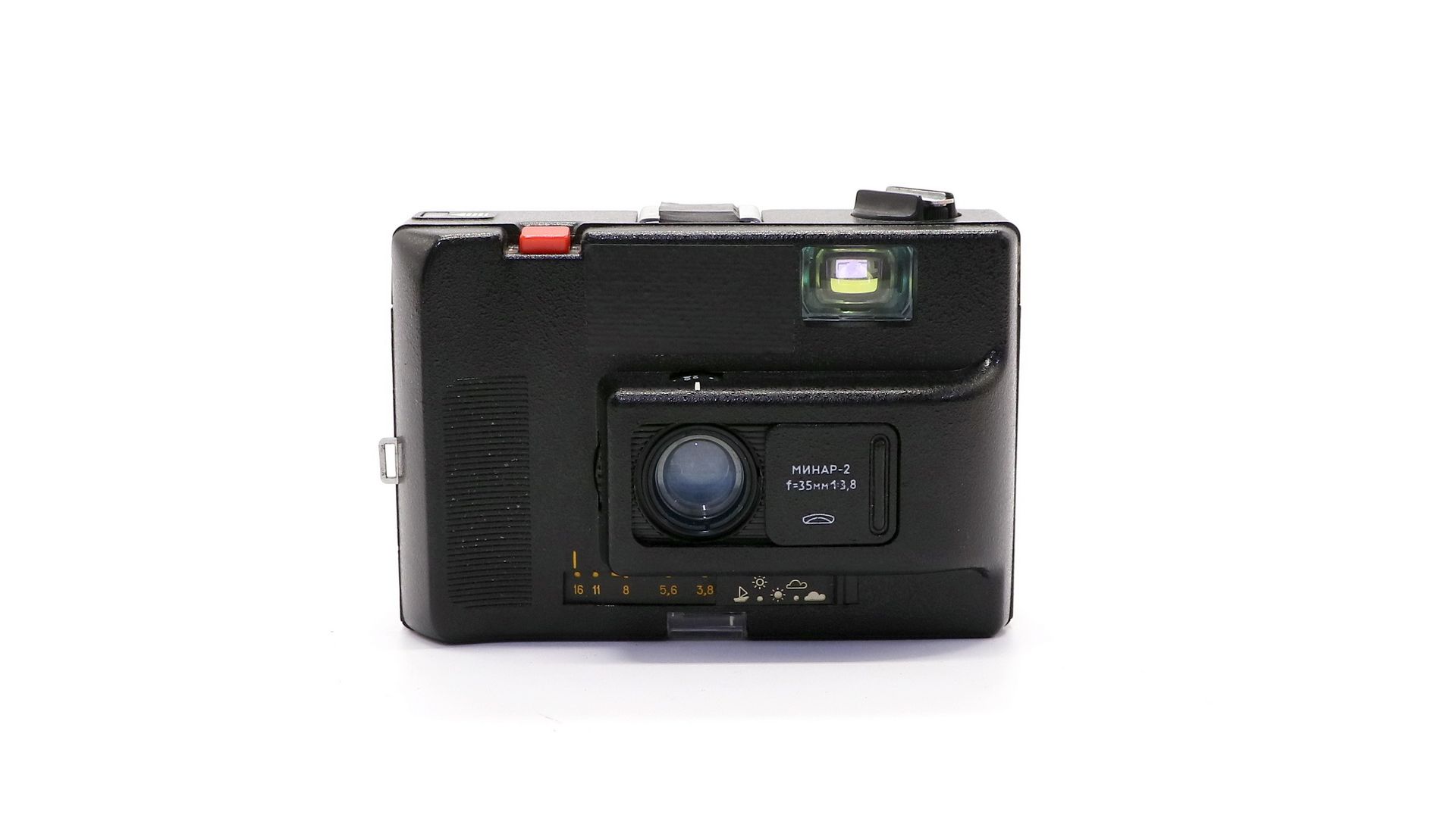 Фотоаппарат с ручной установкой экспозиции по символам погода, работает без эементов питания. Очень удобный компактный и легкий, и фото получаются на него достойные.