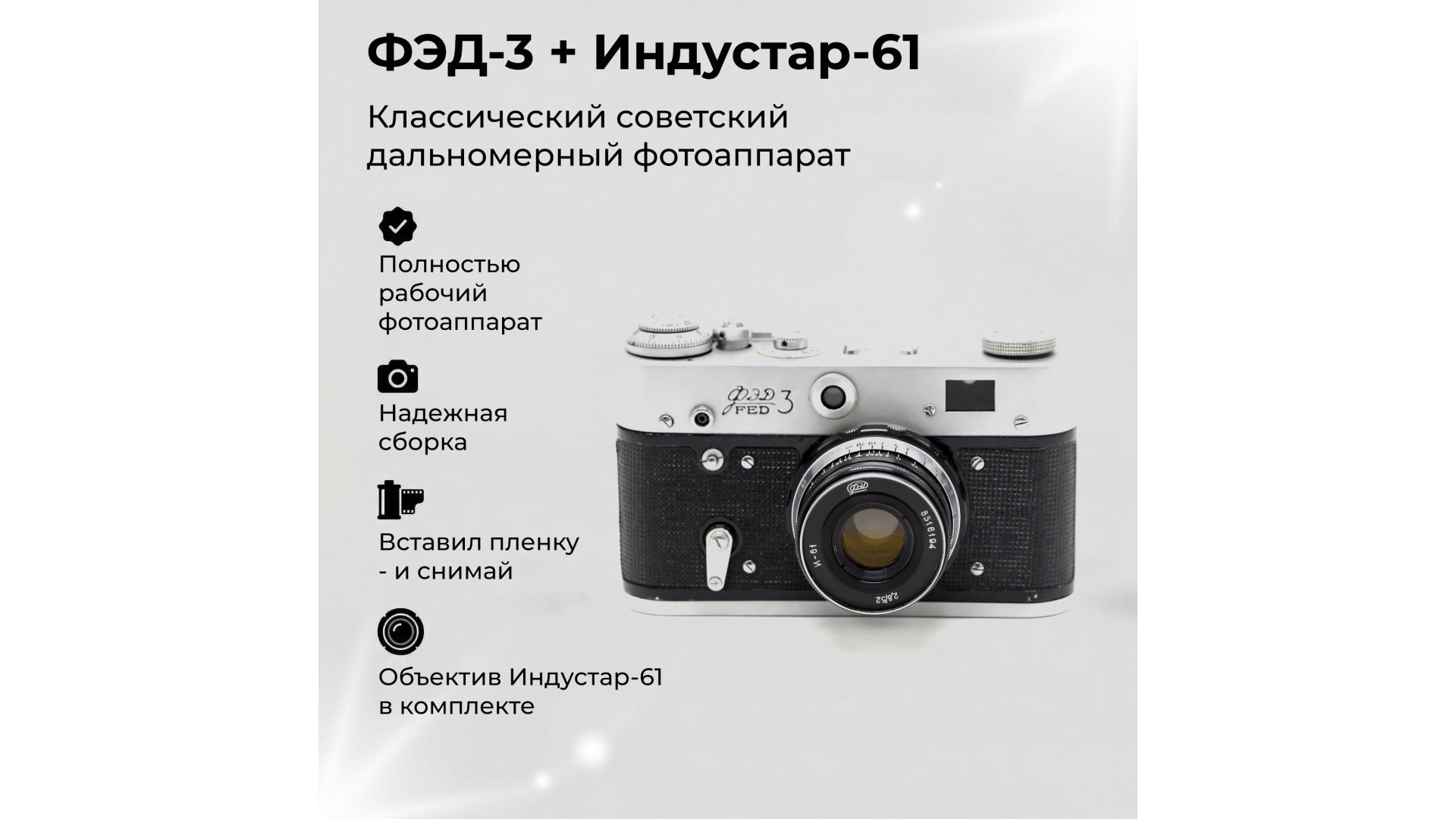 Фотоаппарат ФЭД‑3 + «Индустар‑61»: классика советской дальномерной фототехники