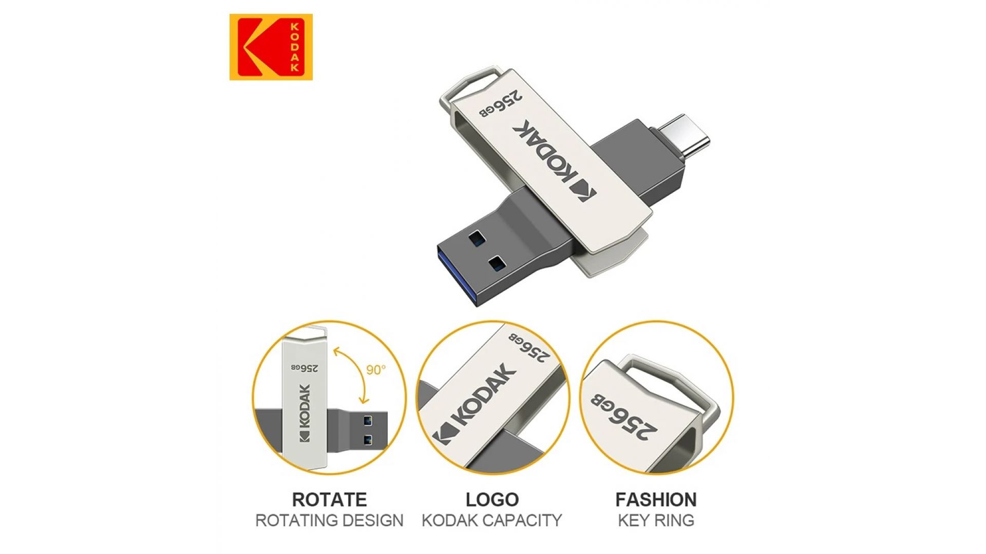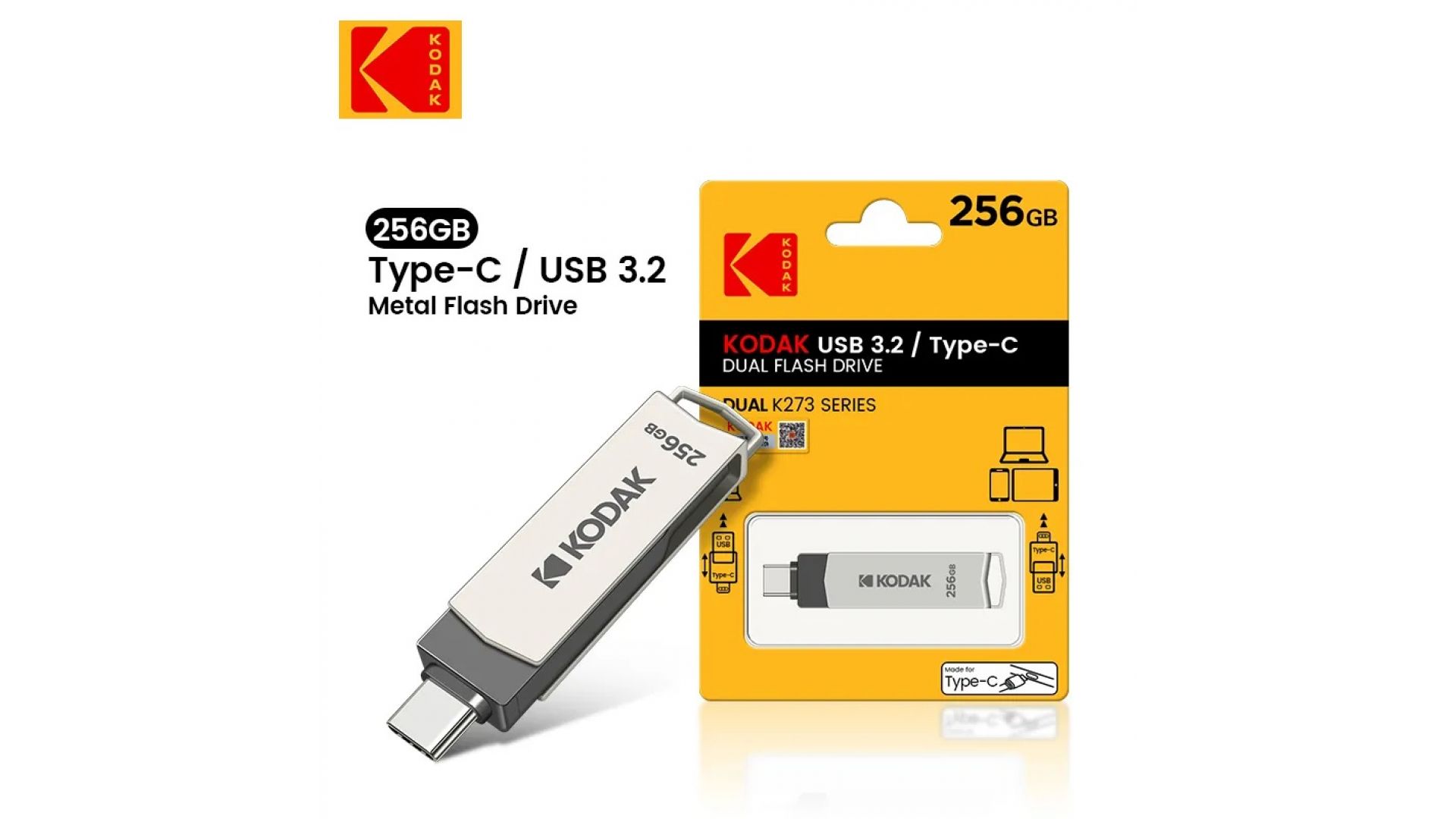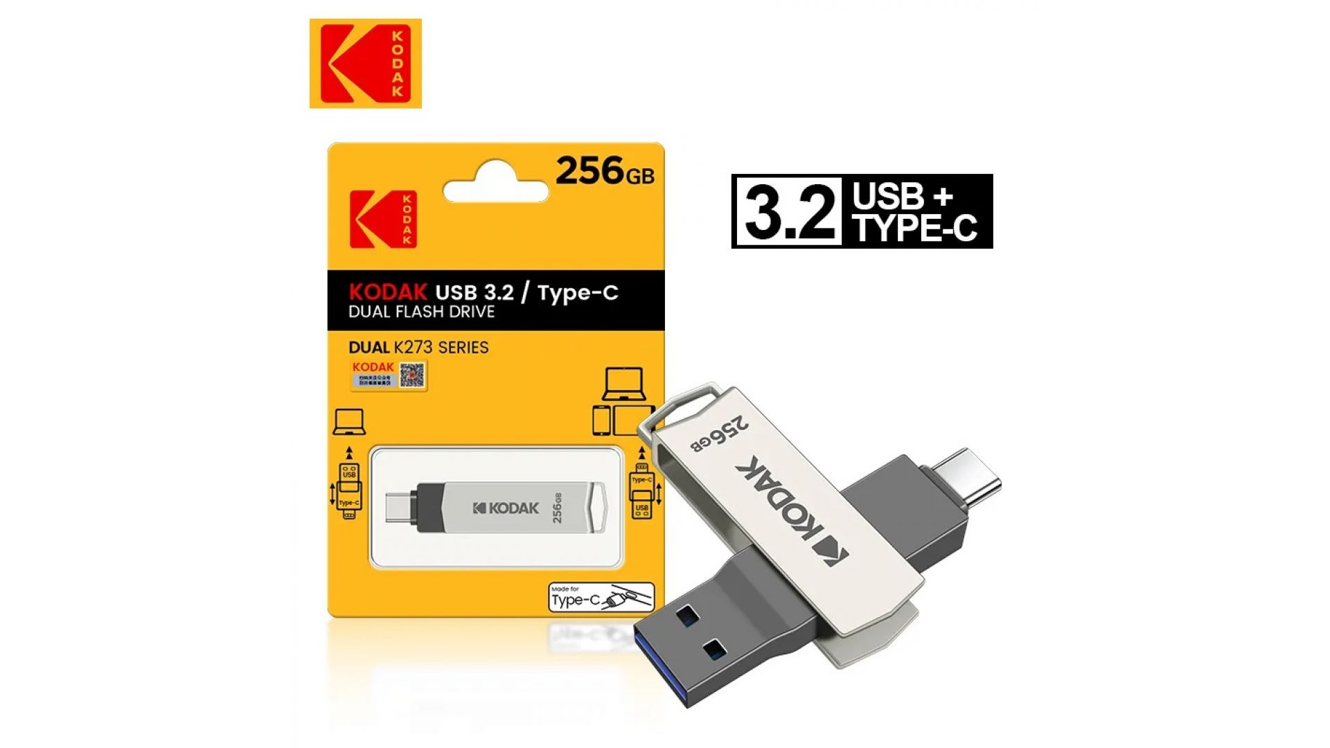 Флеш накопитель KODAK K273 Type-C + USB 3.2 (256 ГБ)