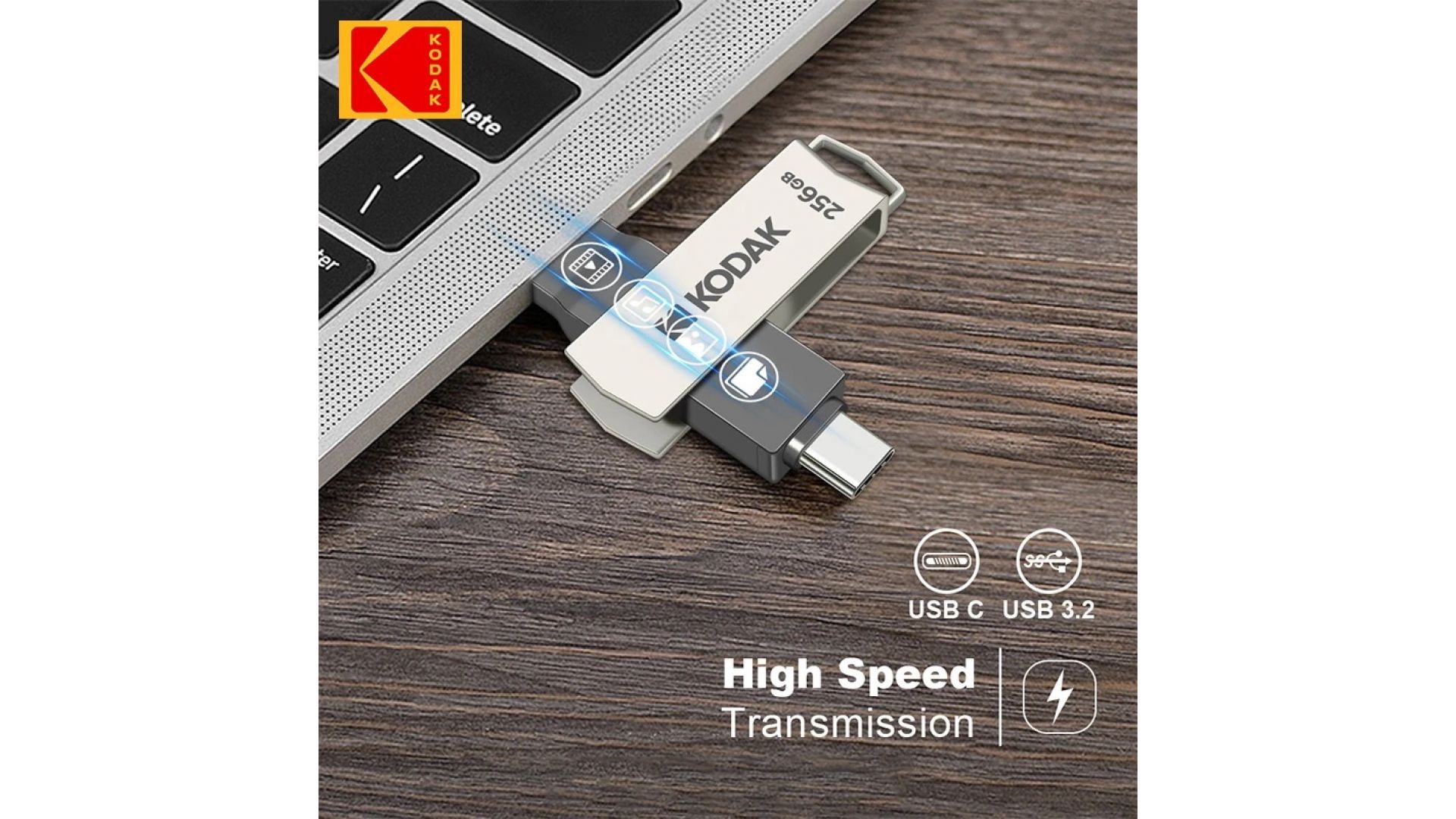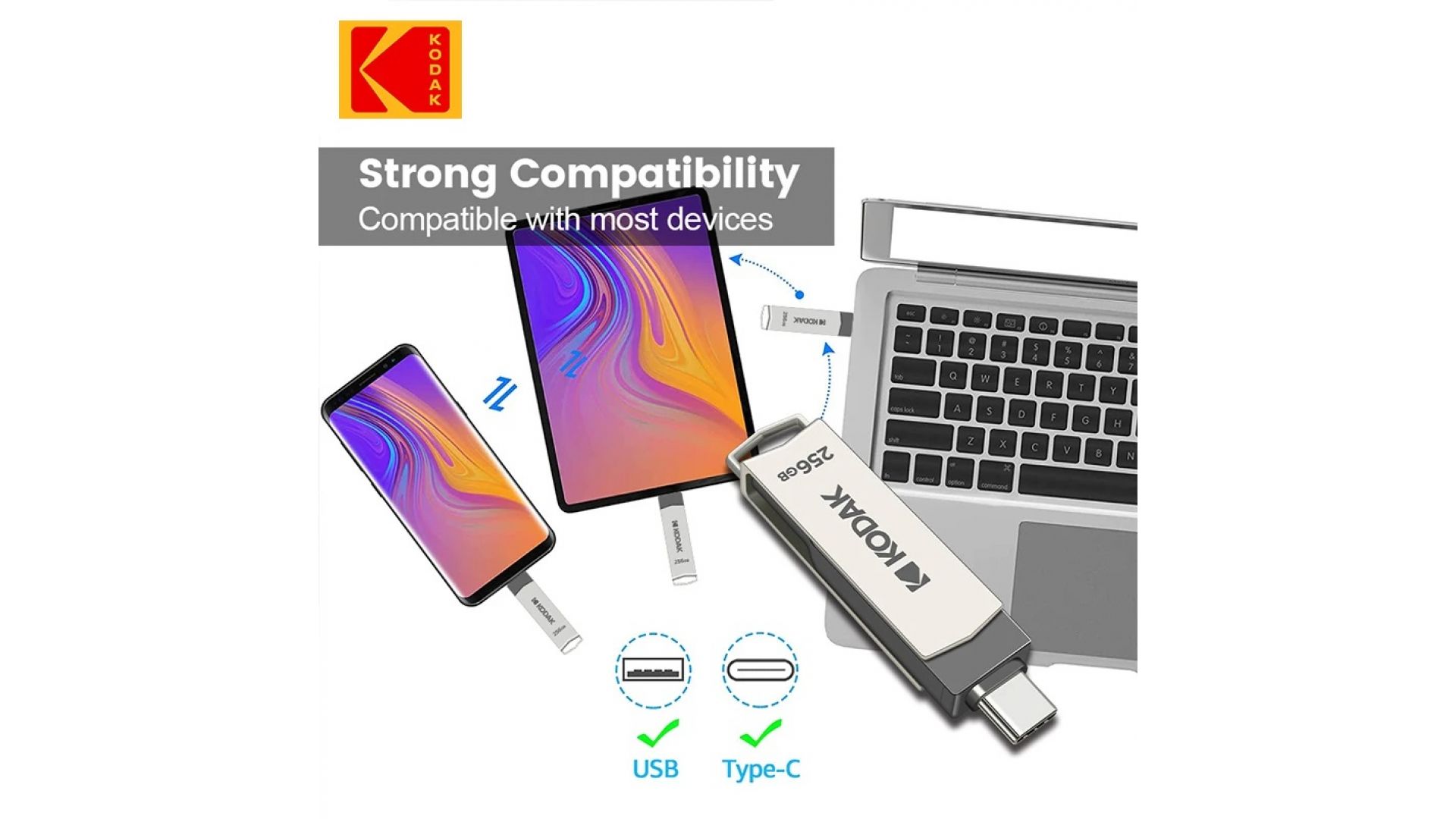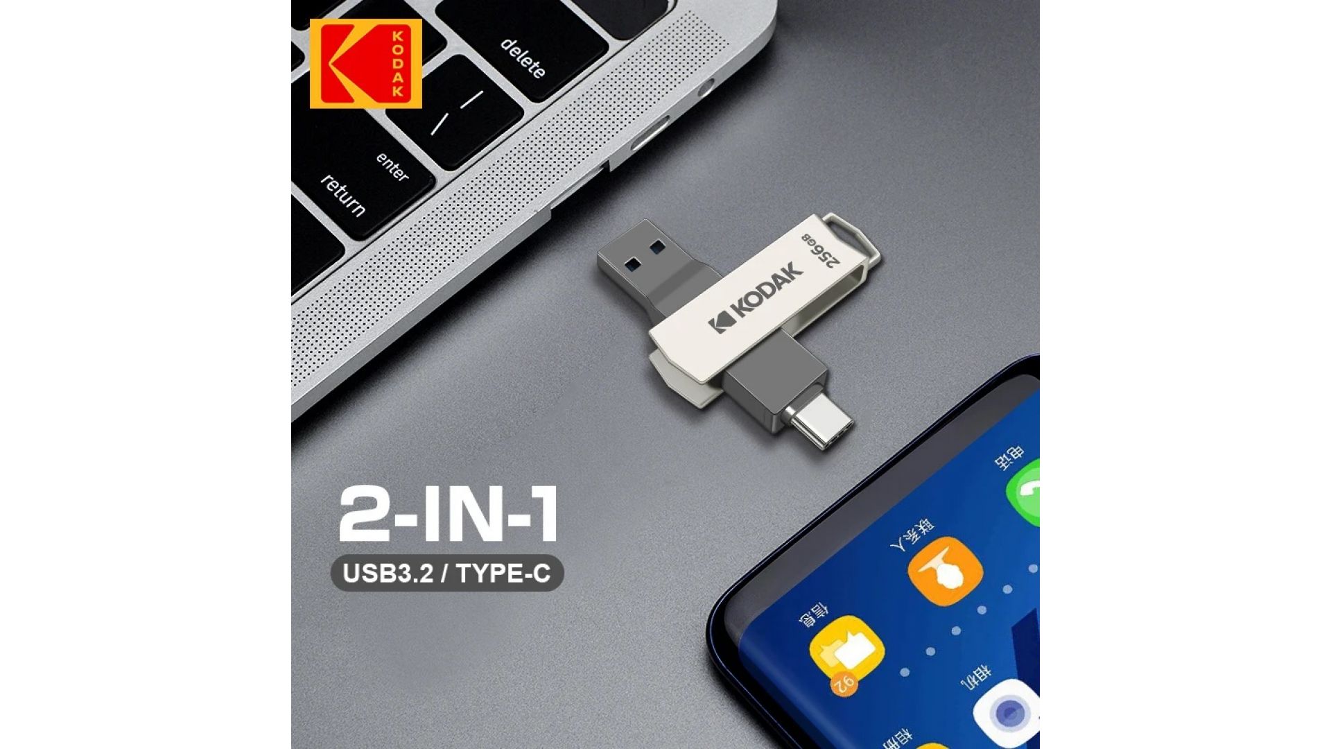 Флеш накопитель KODAK K273 Type-C + USB 3.2 (256 ГБ)