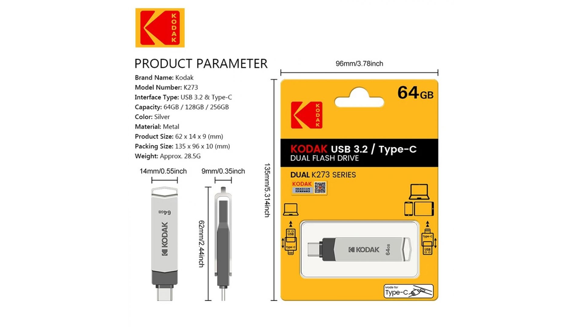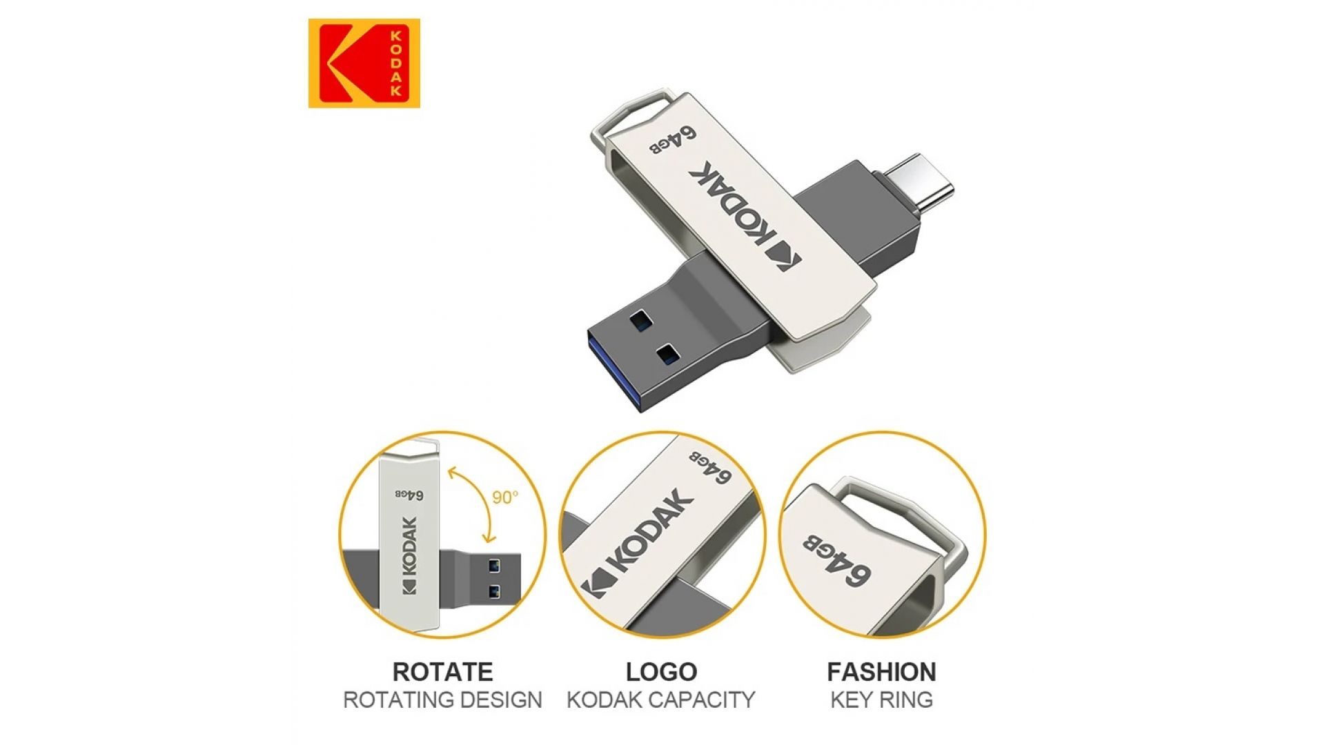 Флеш накопитель KODAK K273 Type-C + USB 3.2 (64 ГБ)