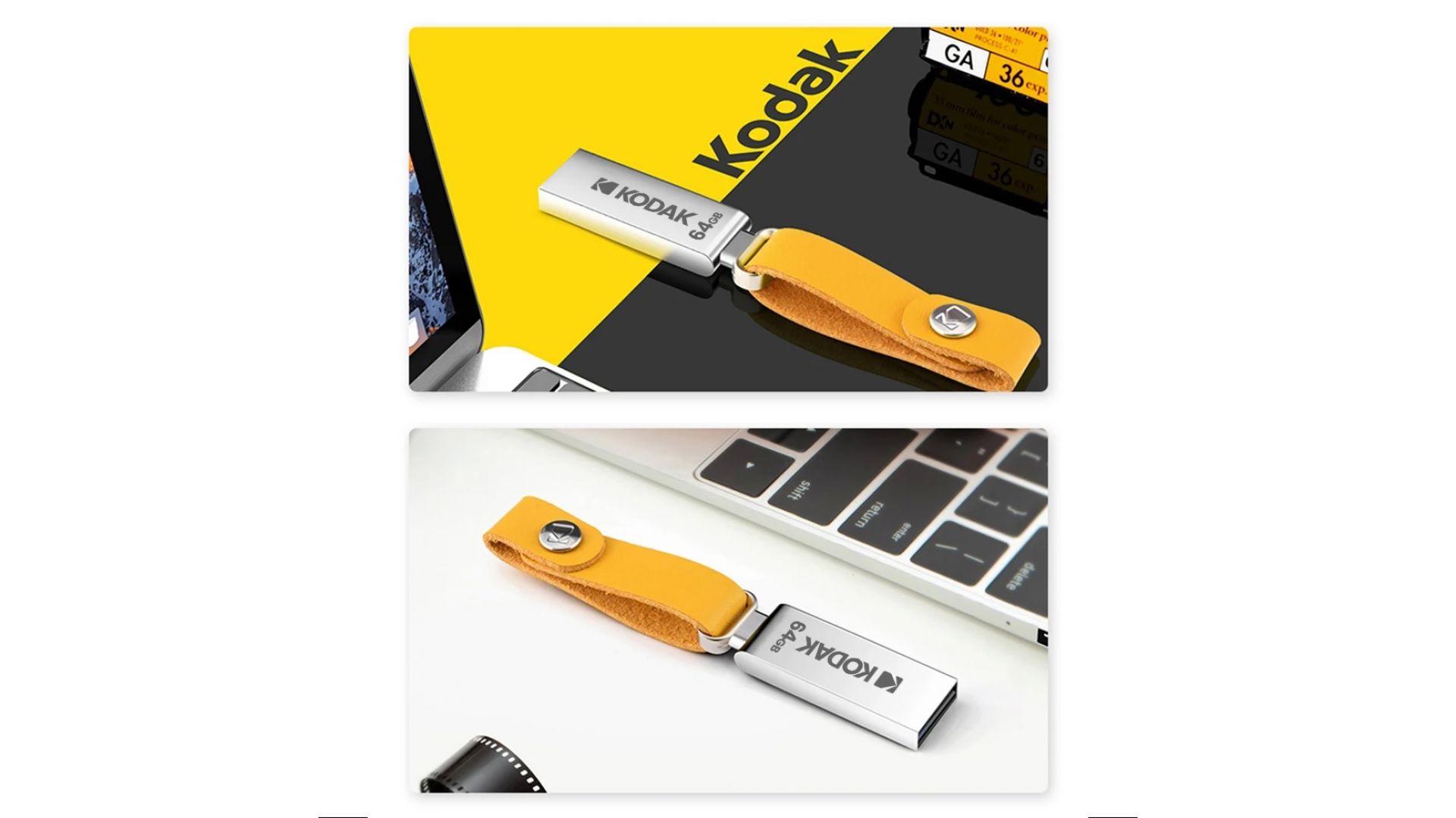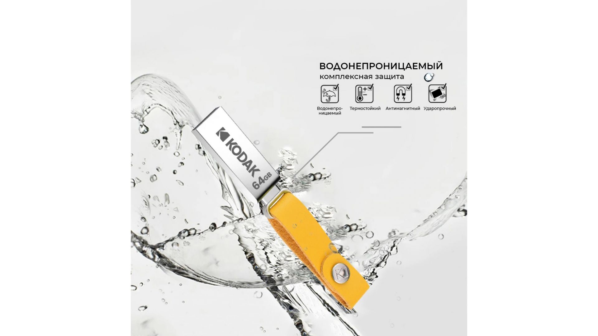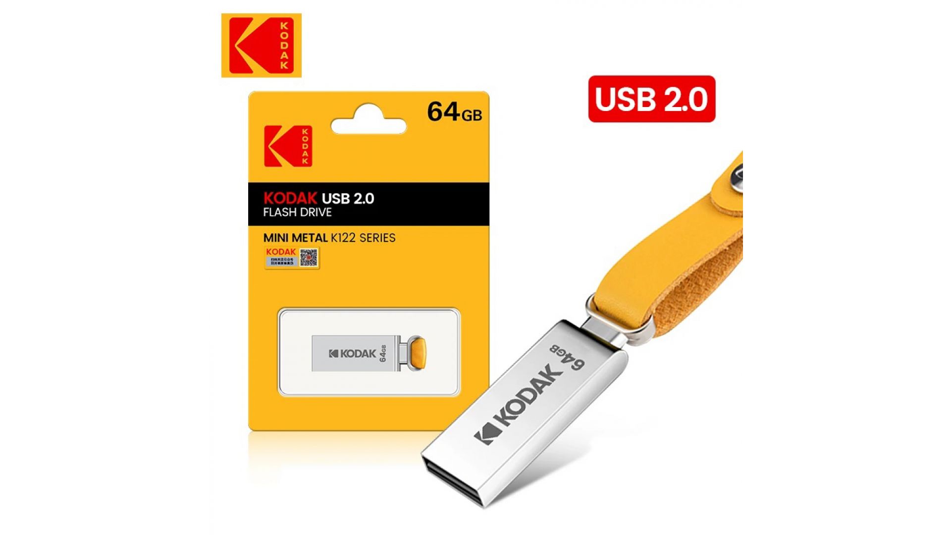 KODAK K122 64 ГБ — стильный и надёжный USB-накопитель в металлическом корпусе с кожаным ремешком.