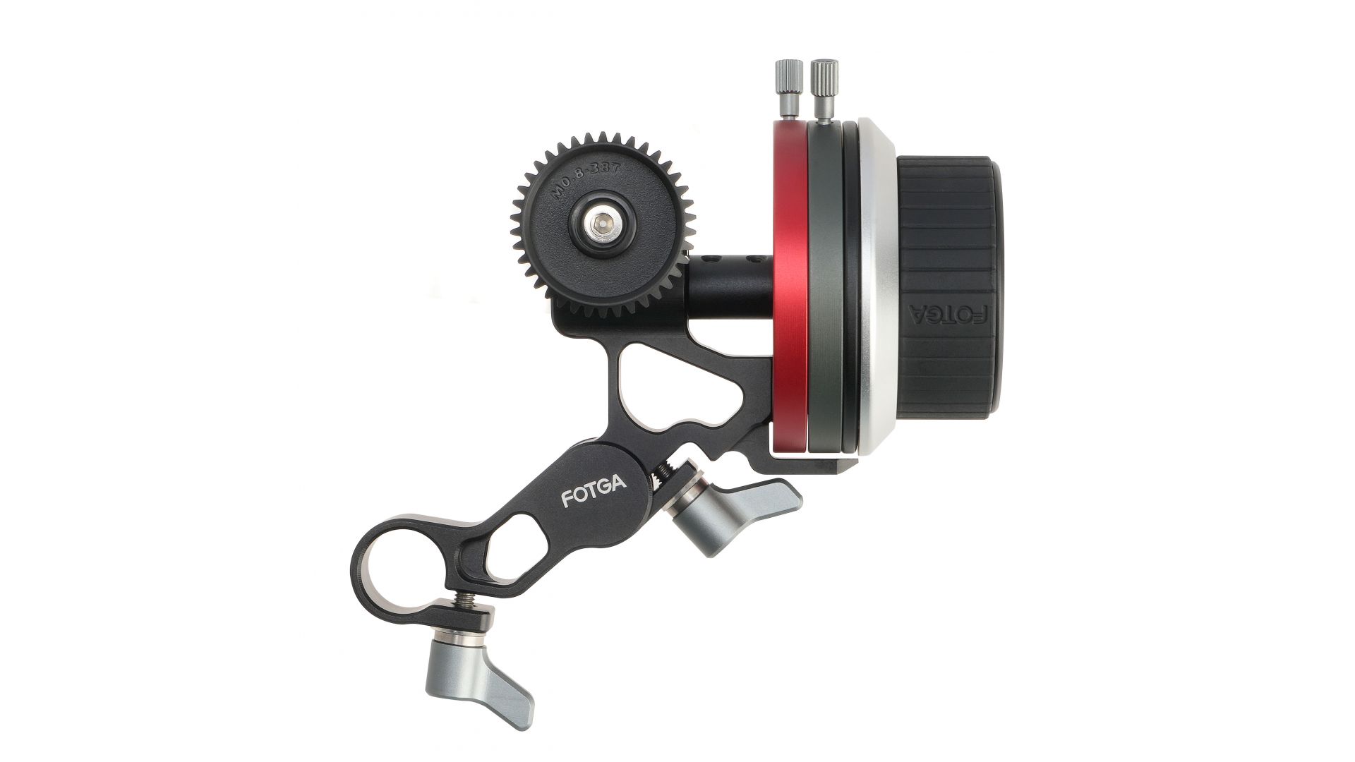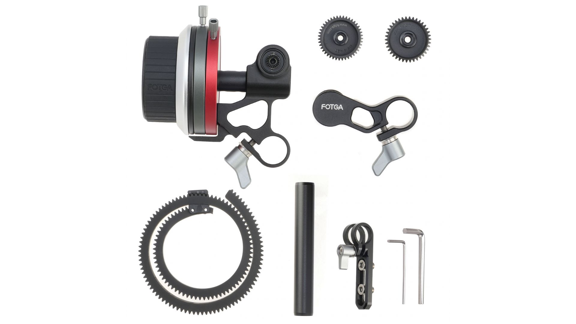 A/B ограничители, 15-миллиметровый фиксатор. Оснащен A/B ограничителями для быстрого и легкого переключения фокусного расстояния. Поставляется с 2 шестеренками (M0.8-38T и M0.8-43T) для использования с объективами разного размера. Механизм может быть установлен слева или справа по необходимости.