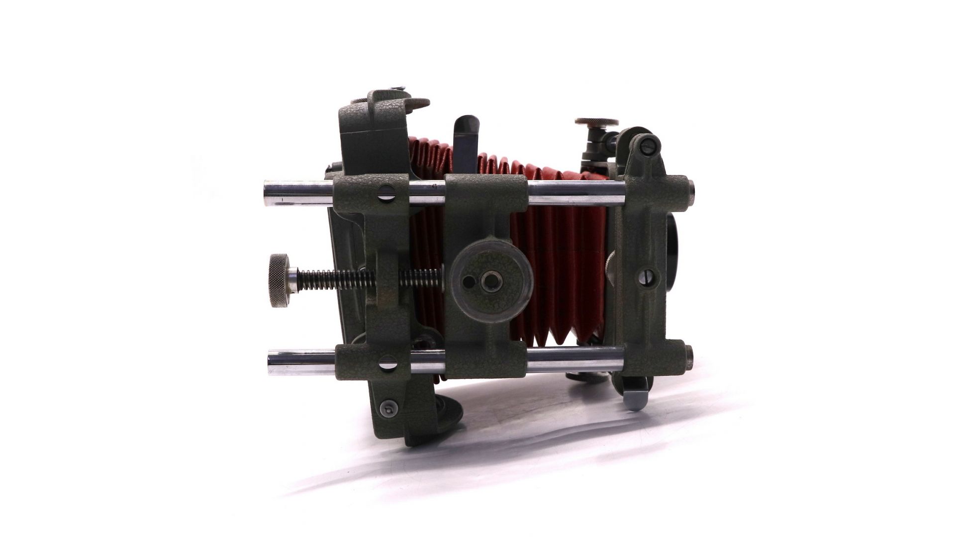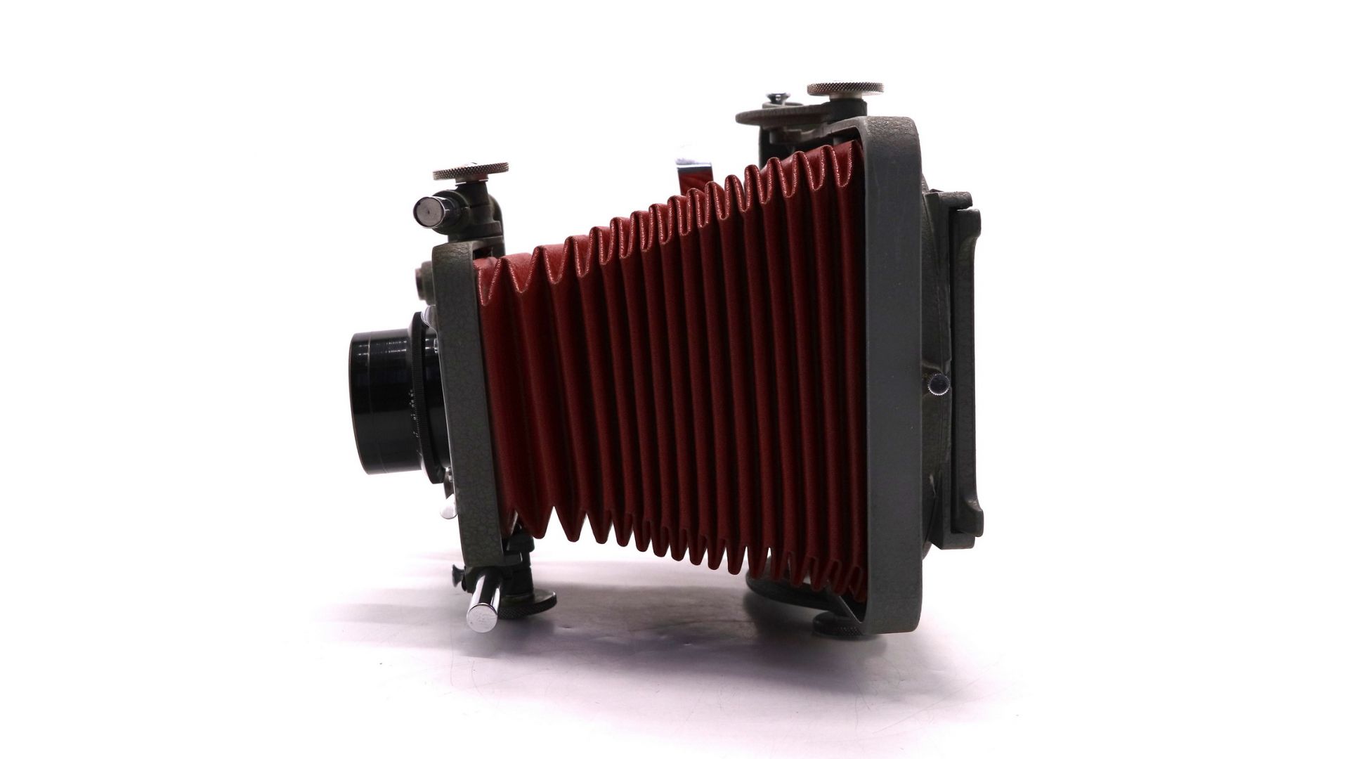 Фотоаппарат рассчитан на применение листовых фотопластинок или роликового адаптера под пленку. Устройство оснащено фокусировочным экраном с лупой для наводки на резкость по матовому стеклу. Затвор — центральный, междулинзовый.