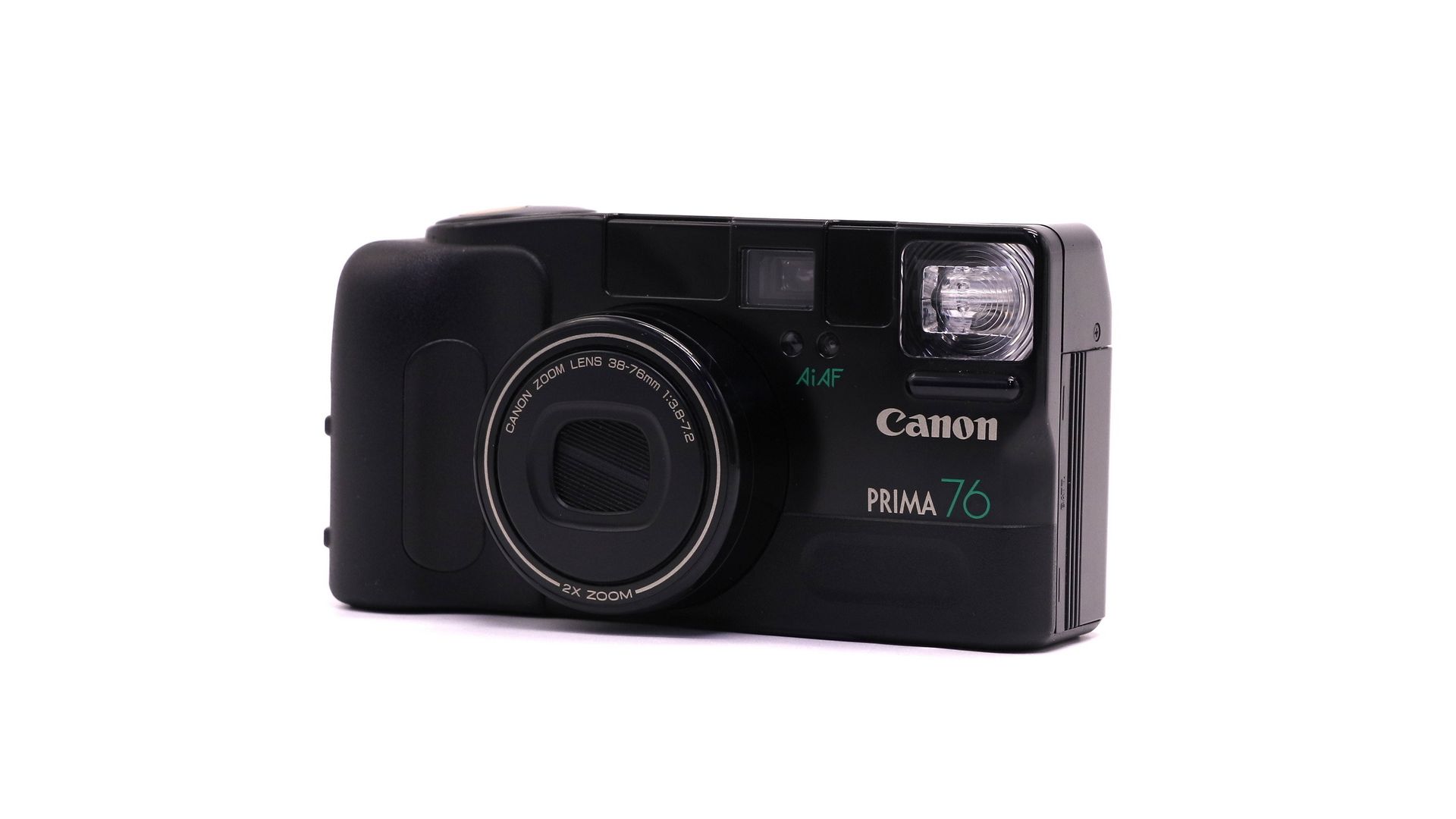 Canon Prima Zoom 76 Caption — компактный плёночный фотоаппарат с зум-объективом и интеллектуальной автофокусировкой AiAF. Модель подходит для первых шагов в плёночной фотографии, путешествий и повседневных съёмок.