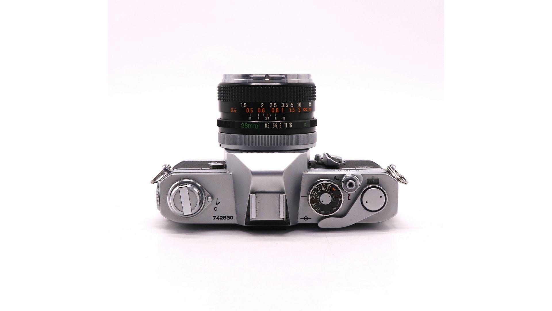 Комплектация:Кофр, ремешок, объектив Canon FD 28mm/3.5, крышка объектива.