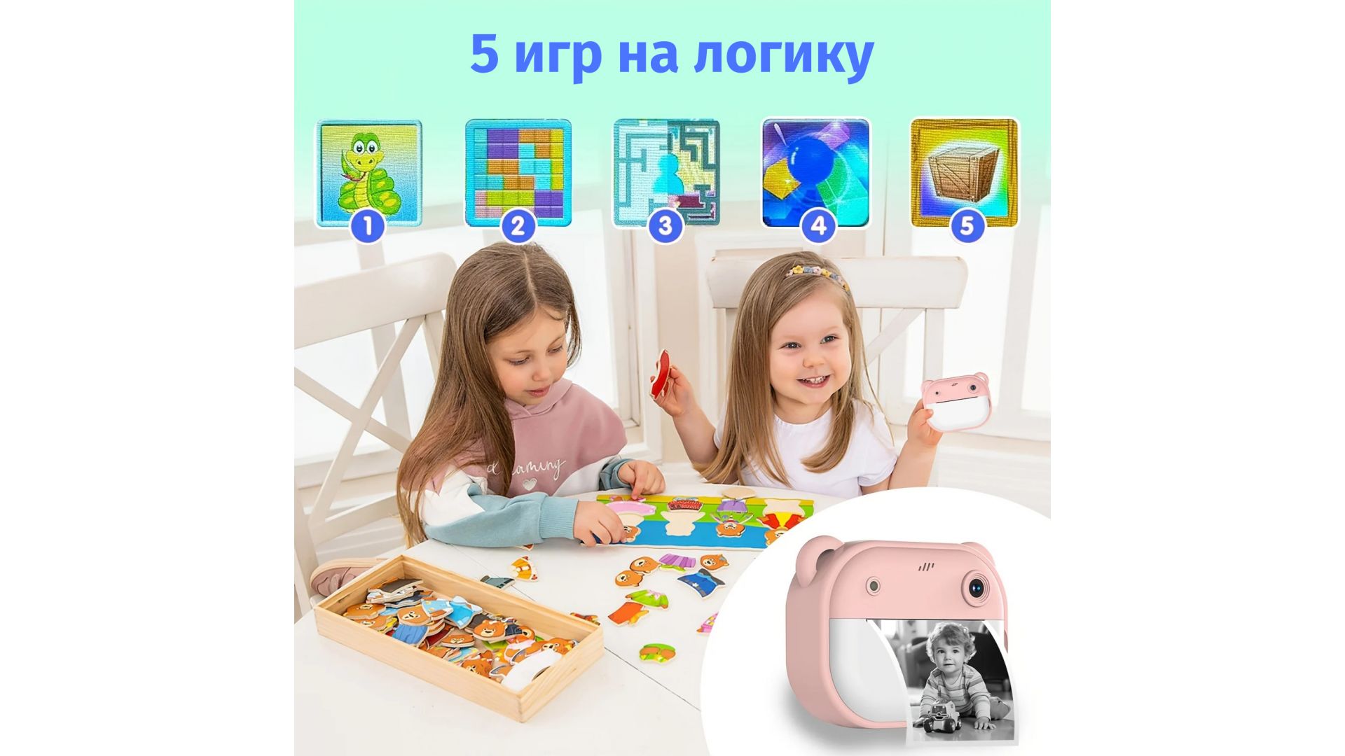 Фотоаппарат мгновенной печати детский розовый