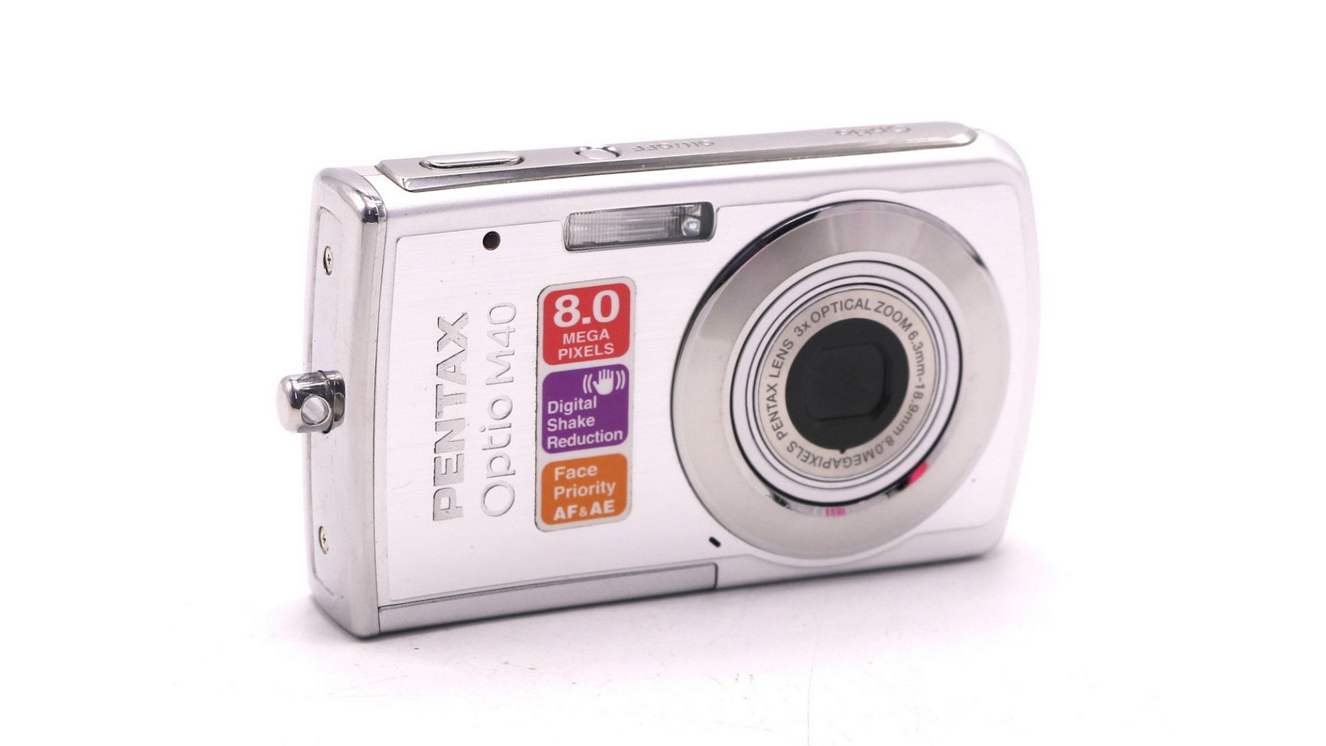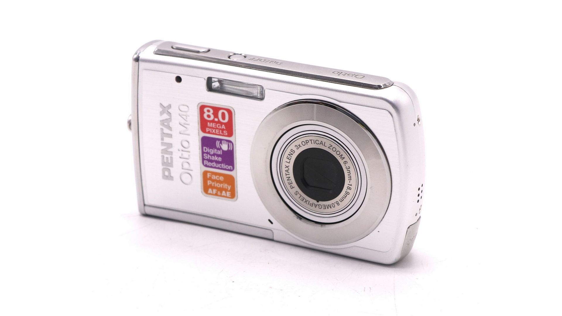 Optio M40 питается от литий-ионного аккумулятора D-LI63 и использует карты памяти SD/SDHC. Это типичный представитель эпохи «цифровых мыльниц» — непритязательный инструмент для повседневных снимков.