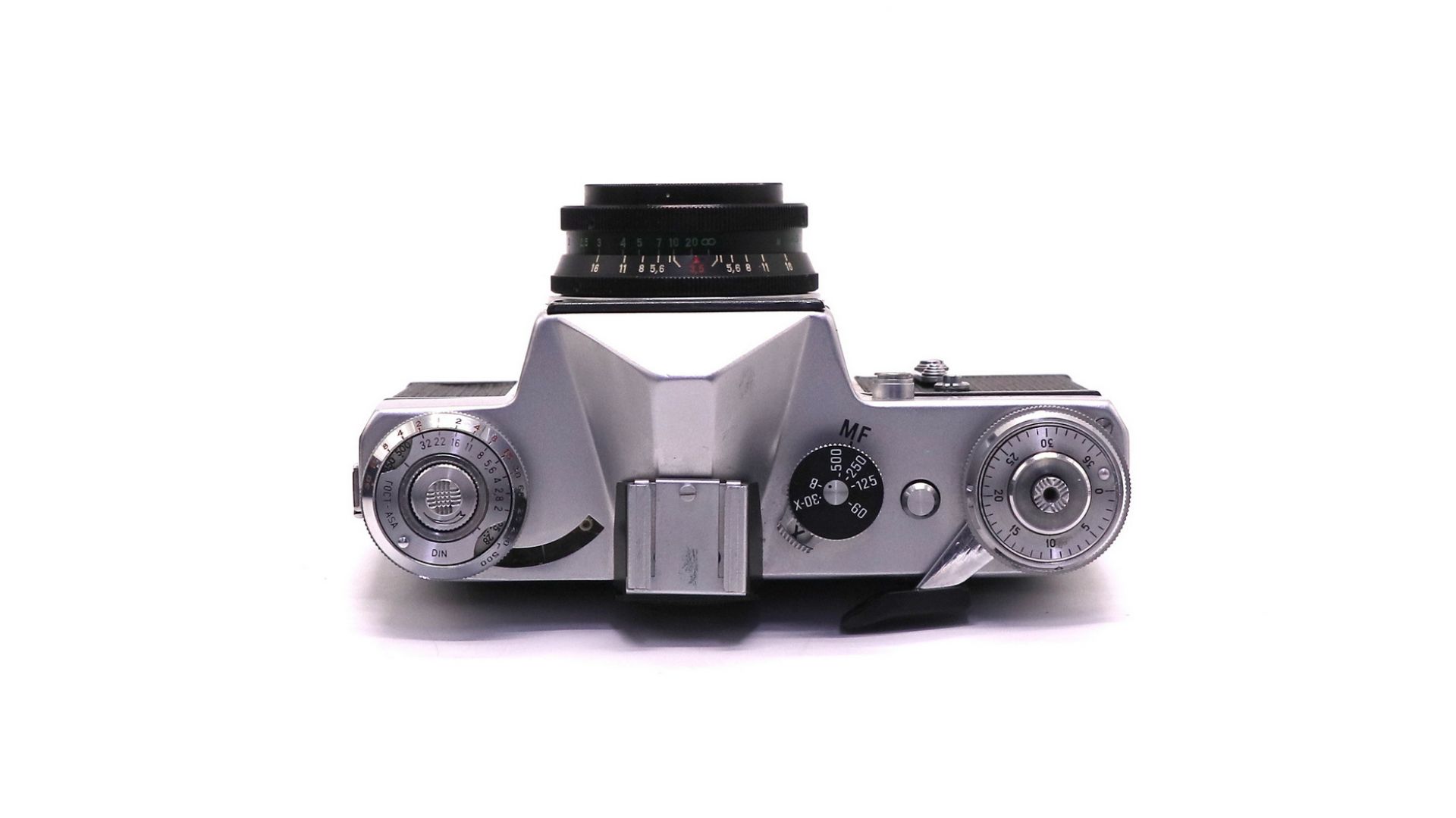 – Технические преимущества: механический затвор с выдержками от 1 с до 1/500 с, резьбовое крепление М42, ручной экспозамер (по шкале или внешнему экспонометру), фокусировочный экран с микрорастром.