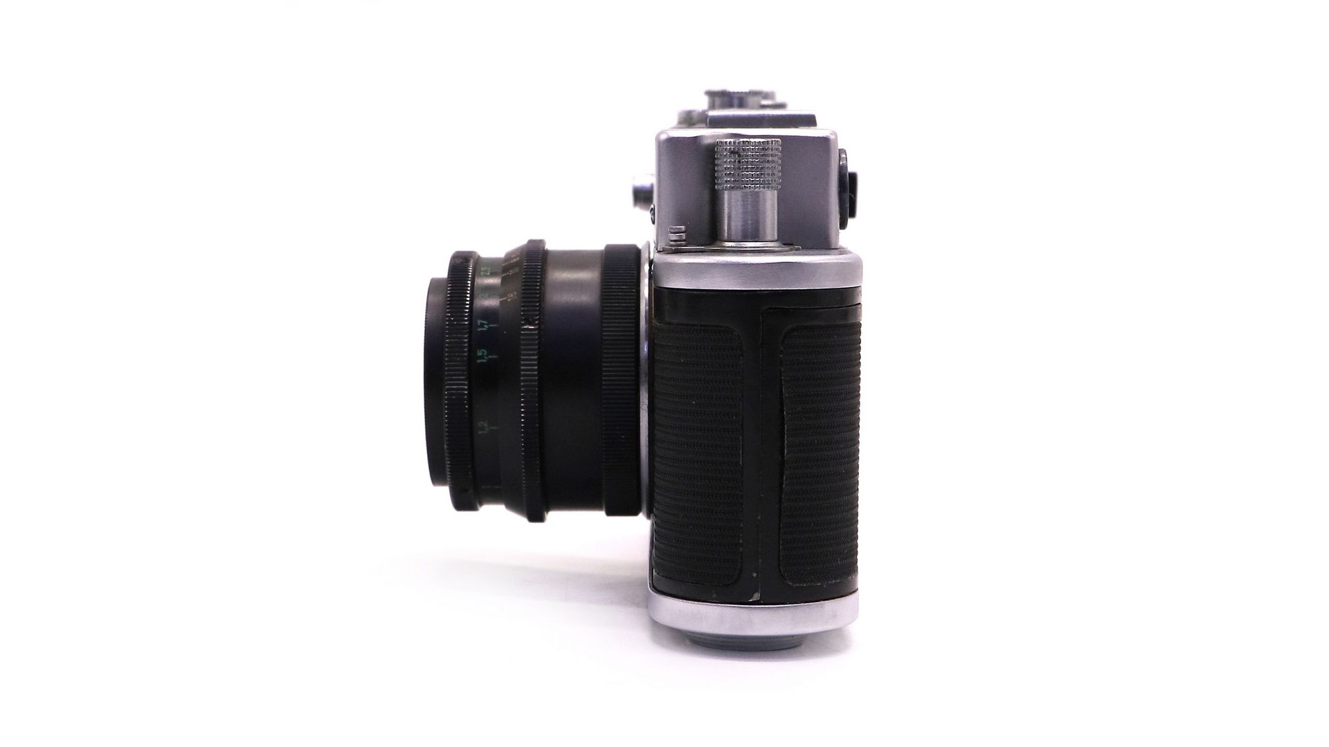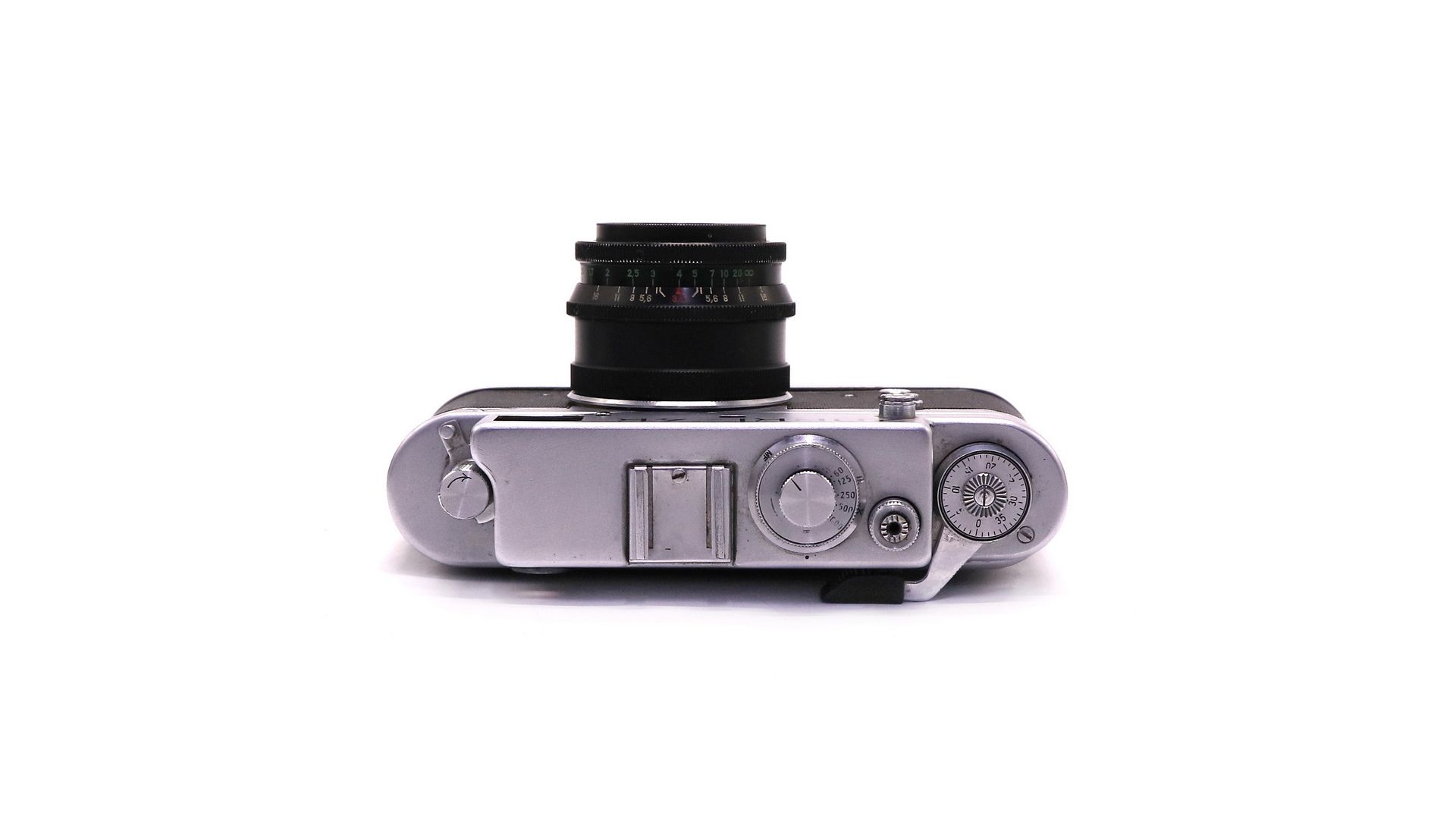 – Отличительные особенности литой корпус из алюминиевого сплава, съёмная задняя стенка, курковый взвод затвора, барабанная перемотка, встроенный дальномер