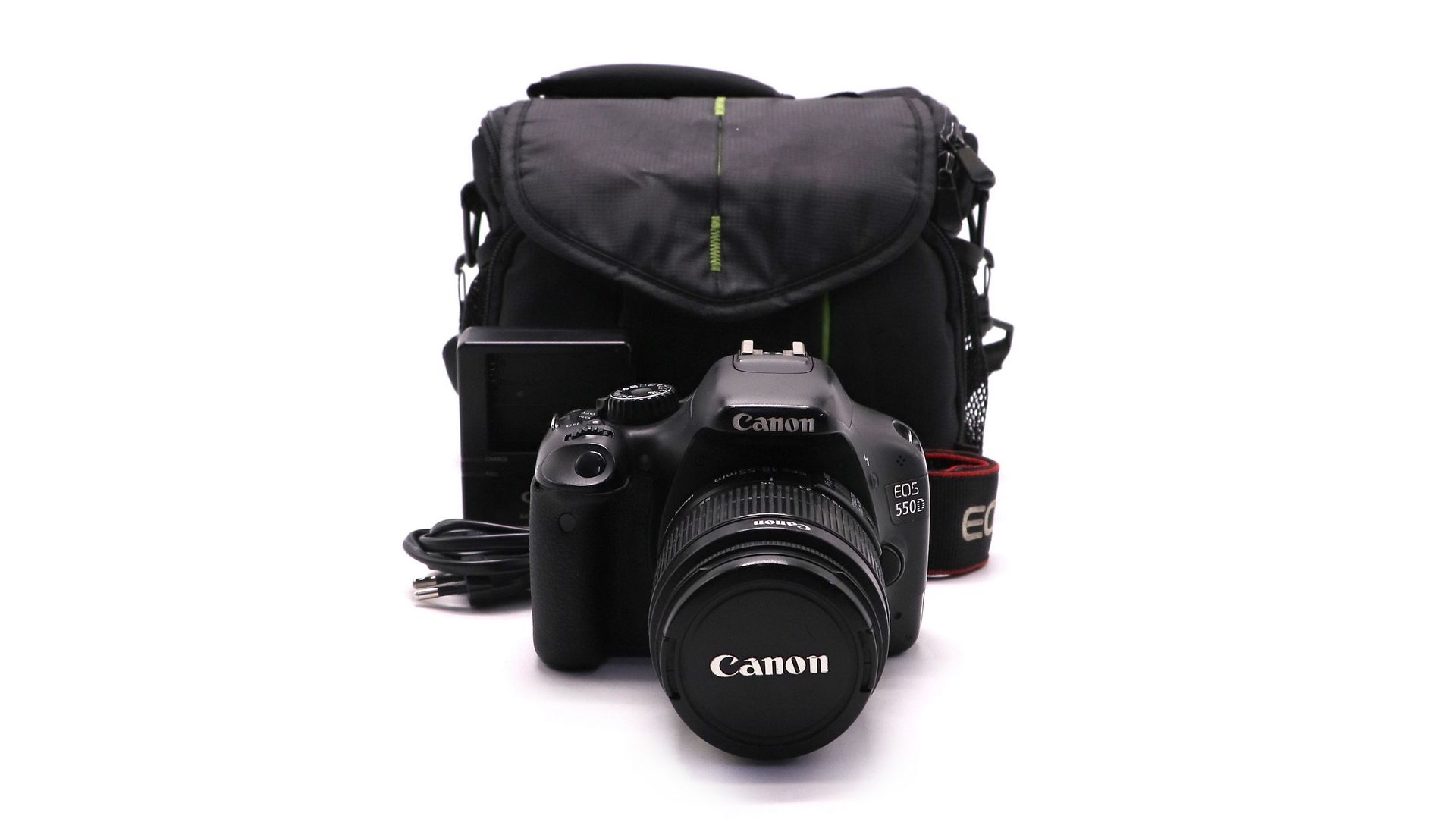Комплектация:Объектив Canon EF-S 18-55mm f/3.5-5.6 IS II, ремень, крышка объектива, аккумулятор, зарядное устройство, сумка.