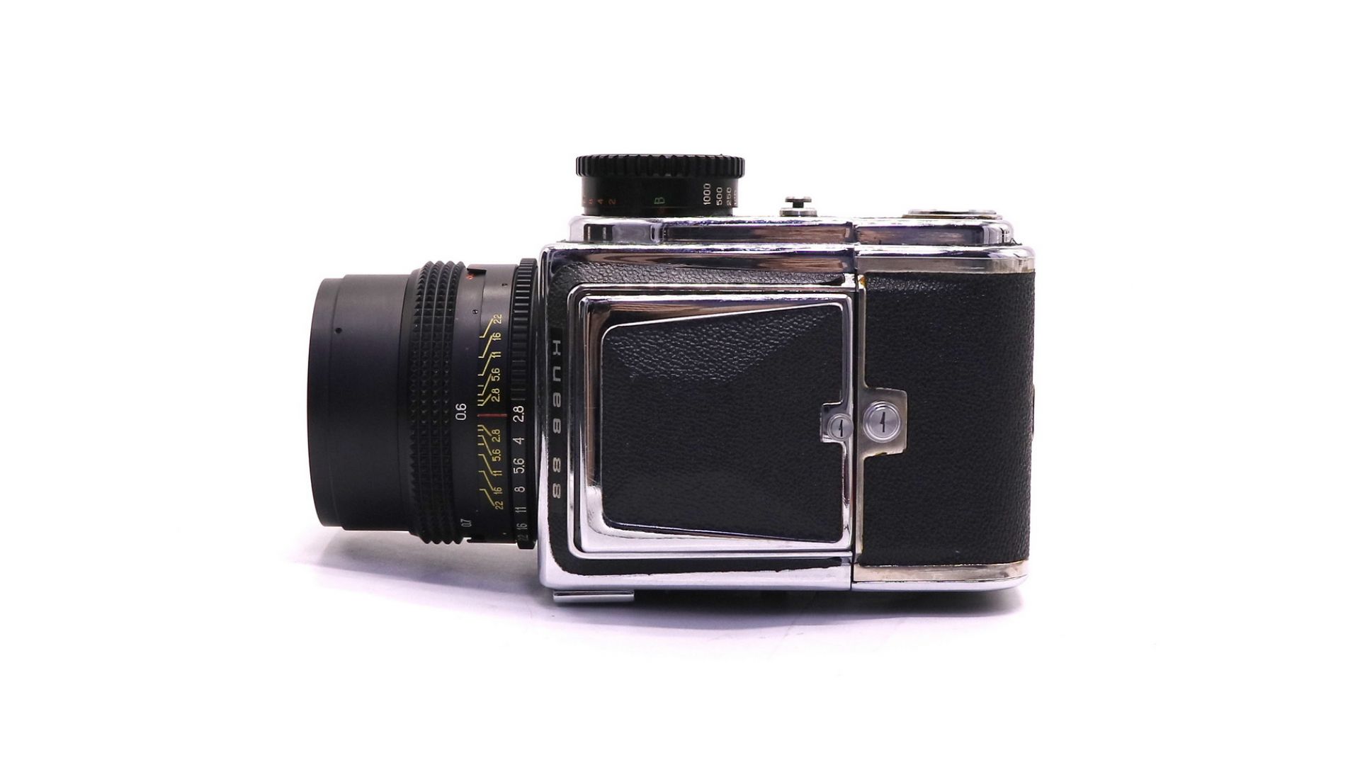– Отличительные особенности: модульная конструкция с легкозаменяемыми компонентами. Штатный объектив Волна-3 2,8/80 МС, размер кадра 6×6 см. Плёнка типа 120 (12 кадров), шторный затвор 1/2-1/1000 с и «В»