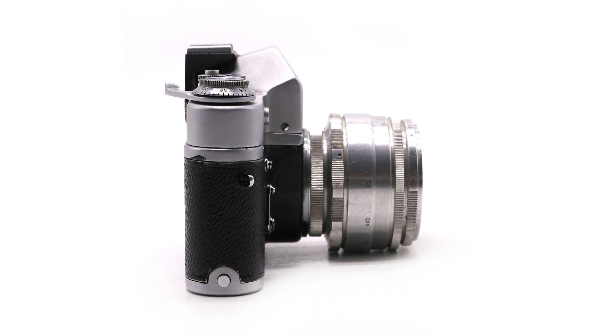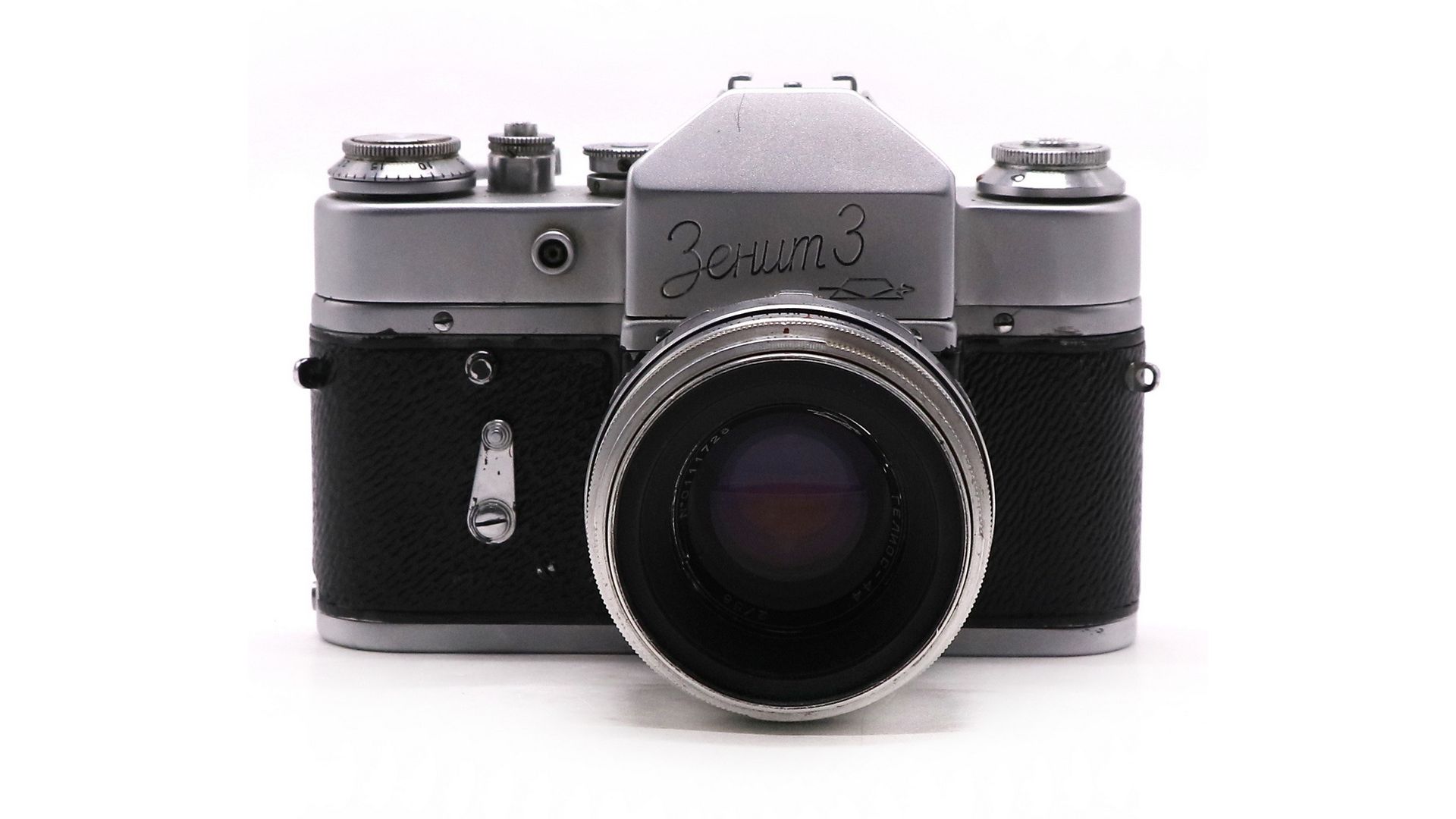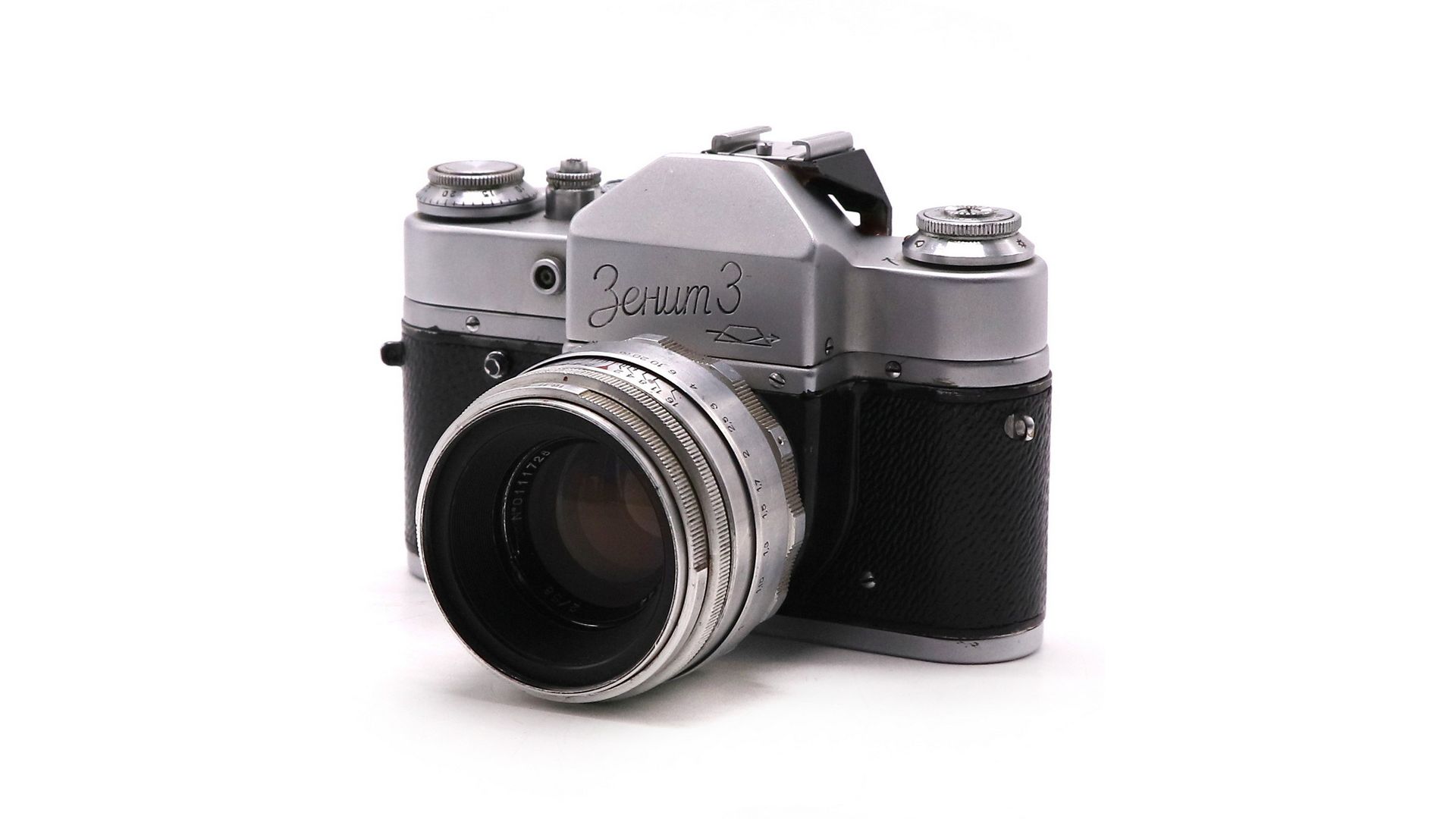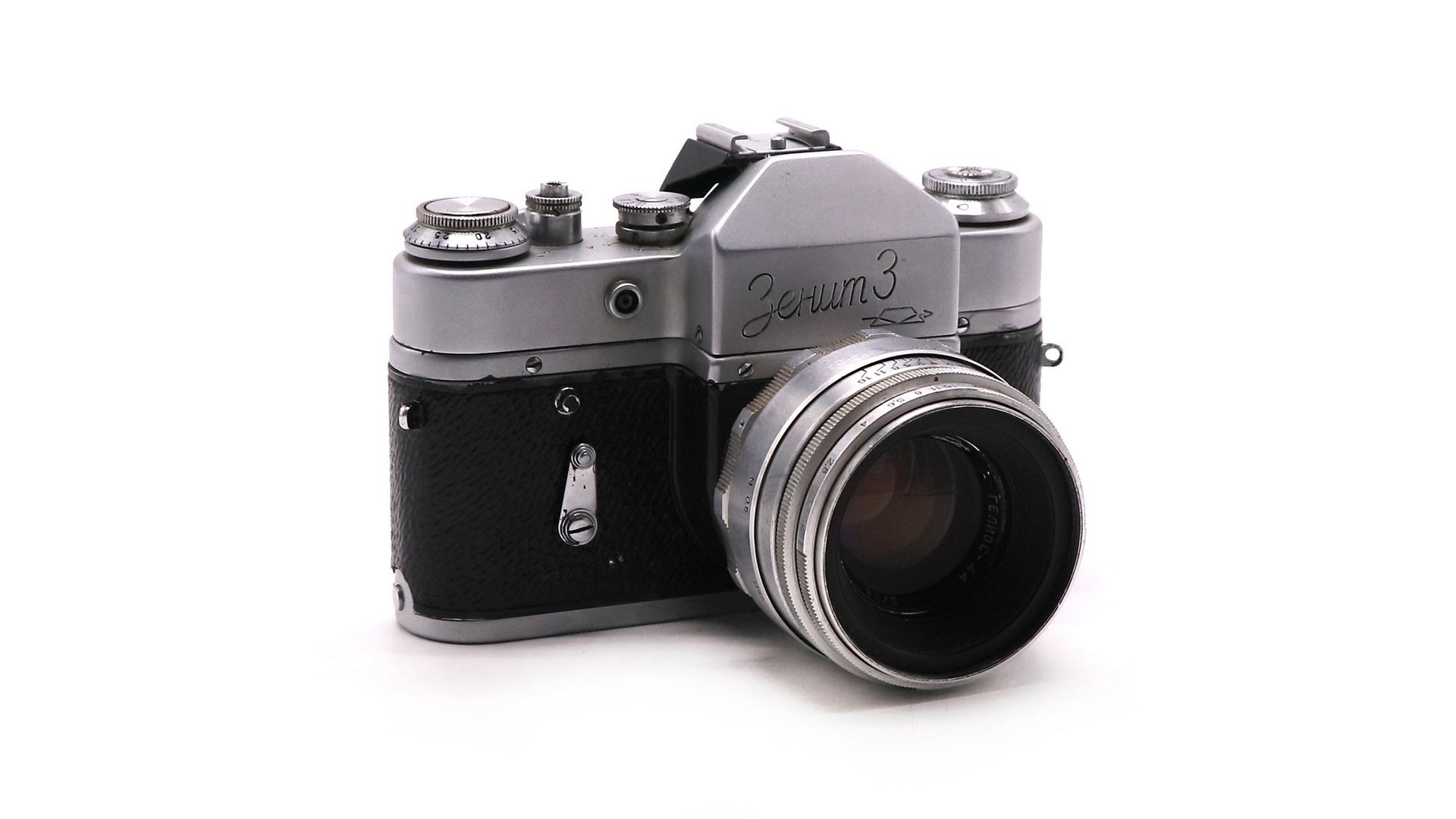 Зенит 3 - довольно редкий советский зеркальный фотоаппарат. Производство Красногорский Механический Завод, 1961 год. Корпус — литой из алюминиевого сплава, со съёмной нижней крышкой. Фотоматериал плёнка типа 135, размер кадра 24×36 мм. Оснащен курковым взводом затвора и перемоткой плёнки. Обратная перемотка головкой. Счётчик кадров с ручной установкой первого кадра.